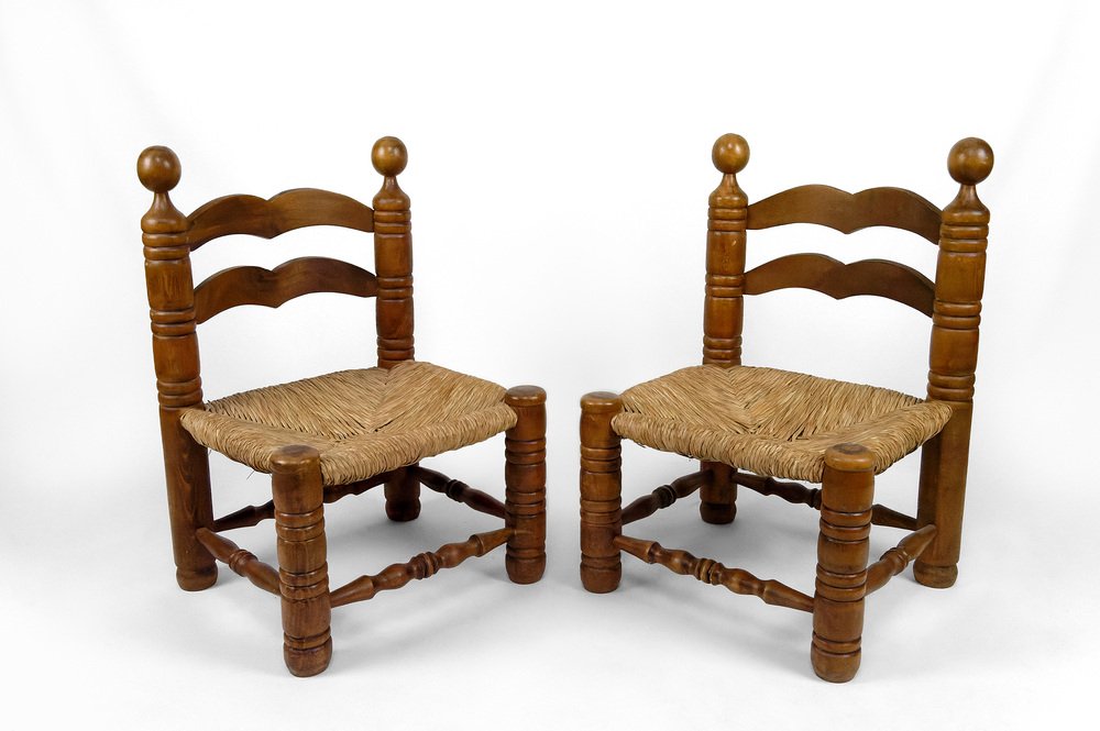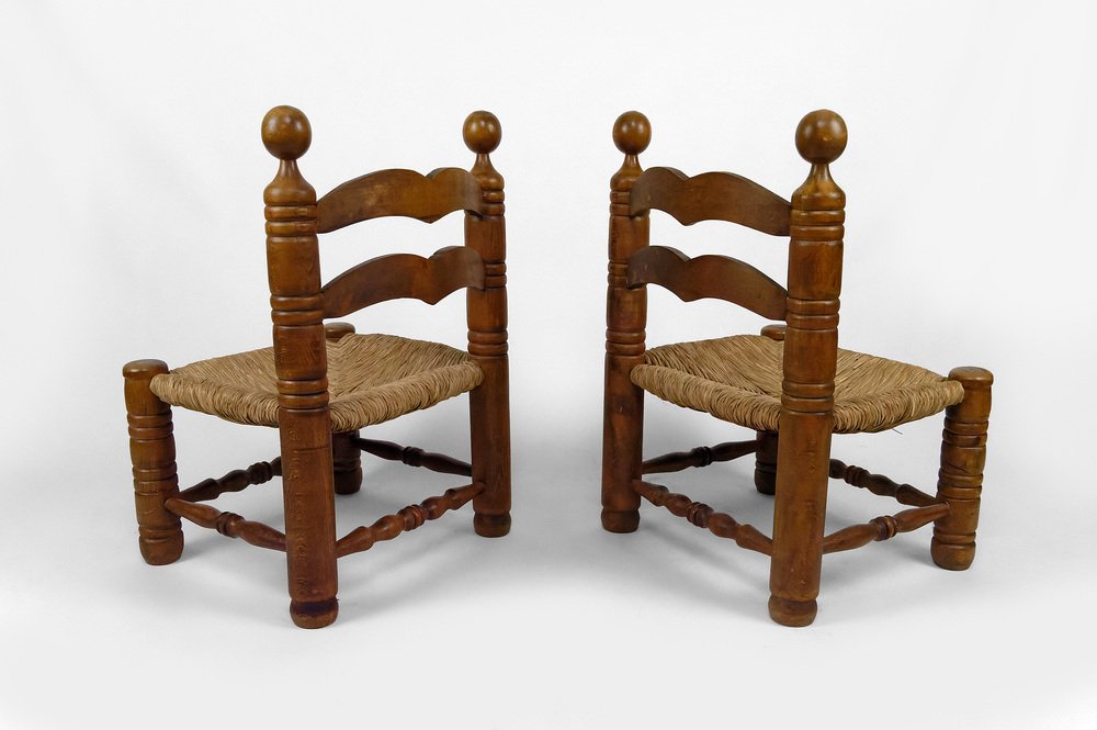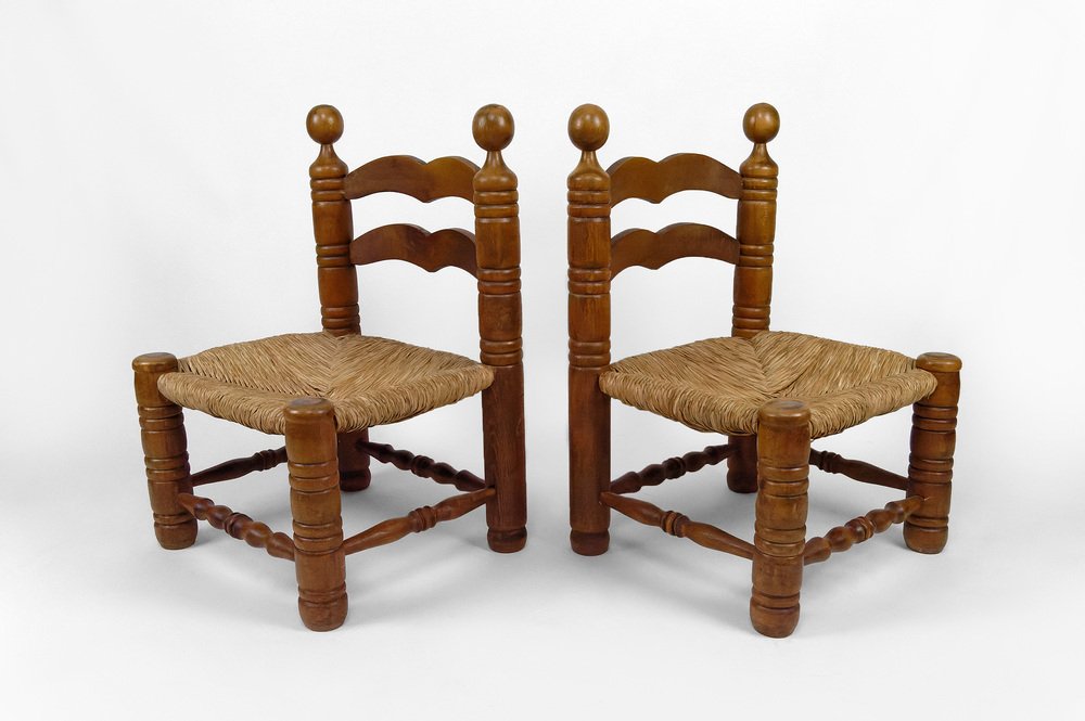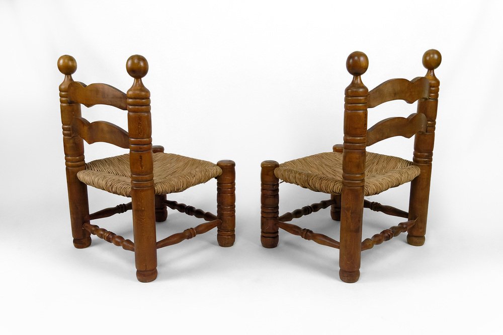 Set of Low Straw Chairs attributed to Charles Dudouyt, France, 1940s