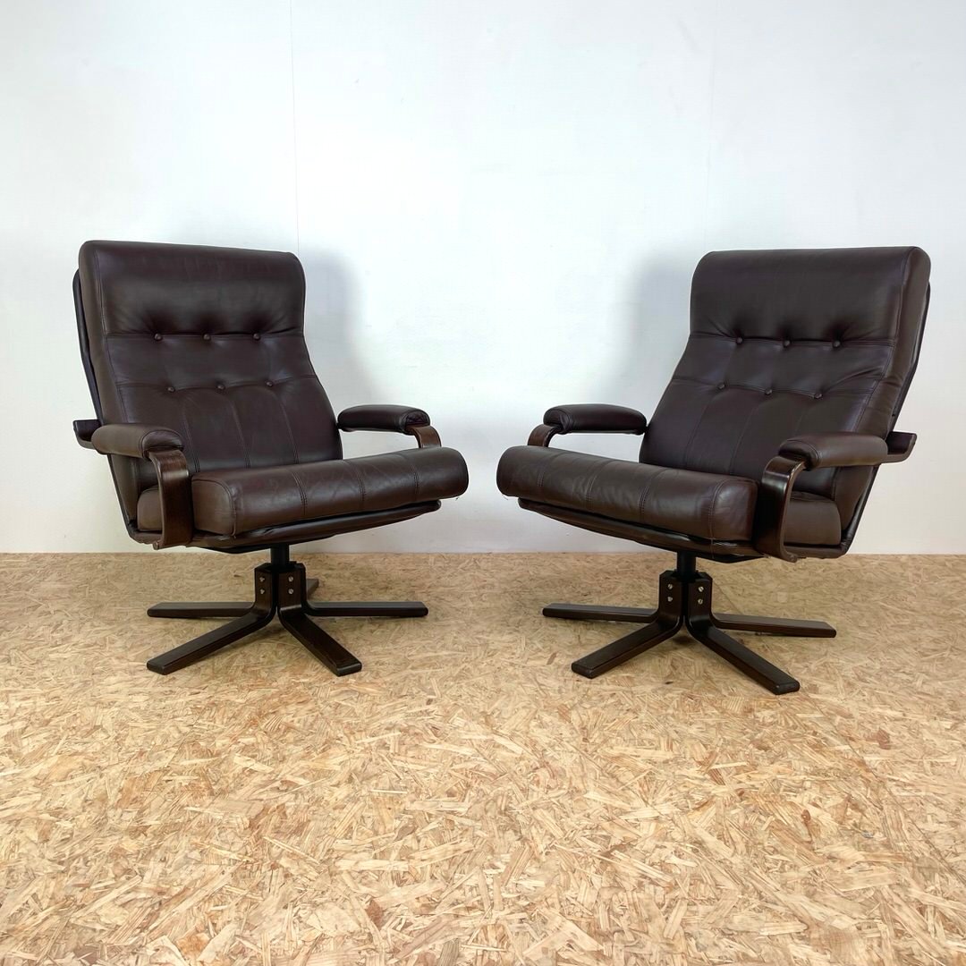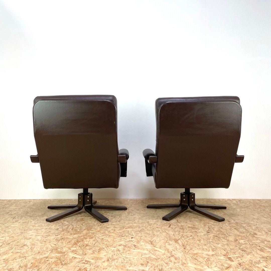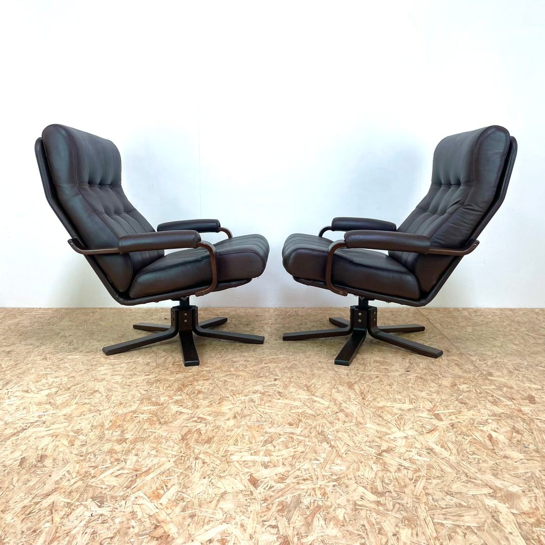 Set of Mid-Century Leather Swivel Chairs attributed to Kebe, 1970s