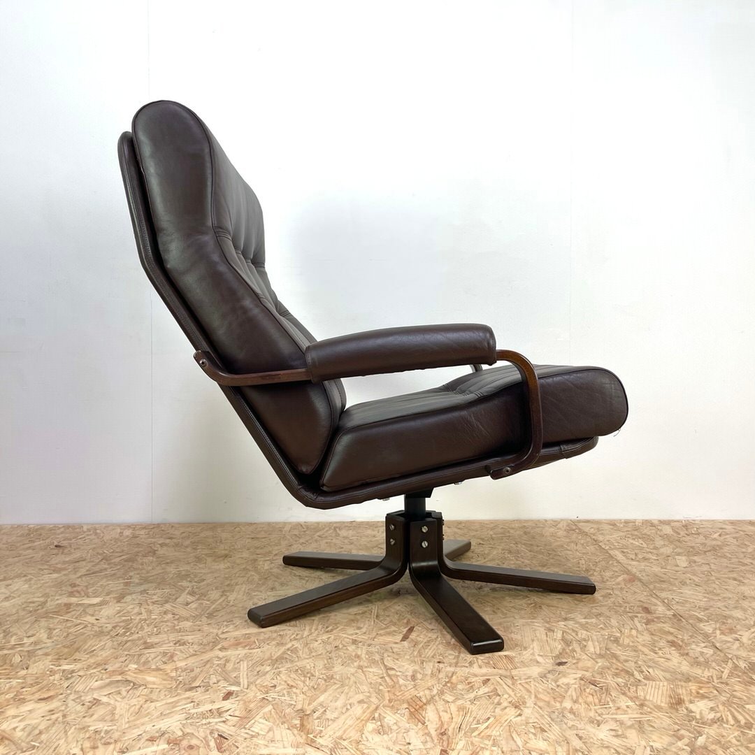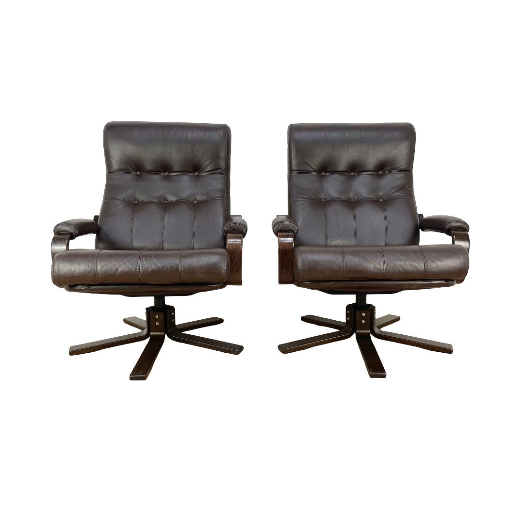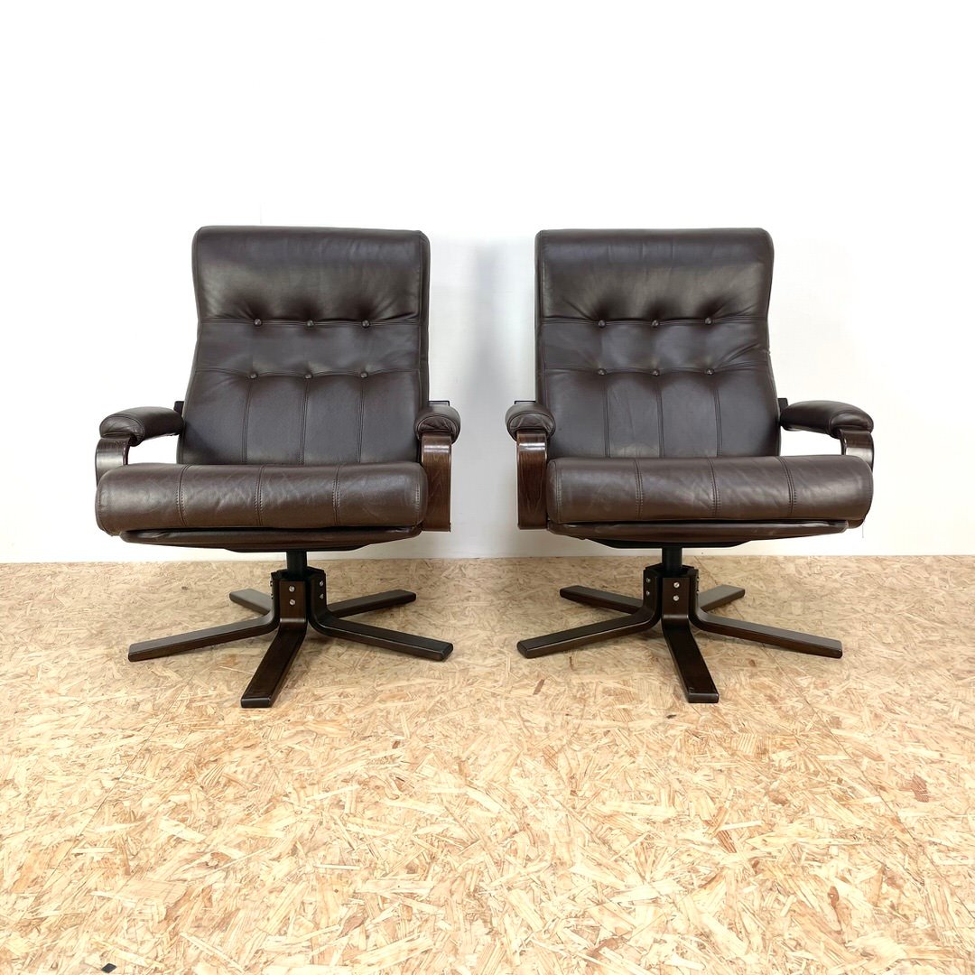 Set of Mid-Century Leather Swivel Chairs attributed to Kebe, 1970s