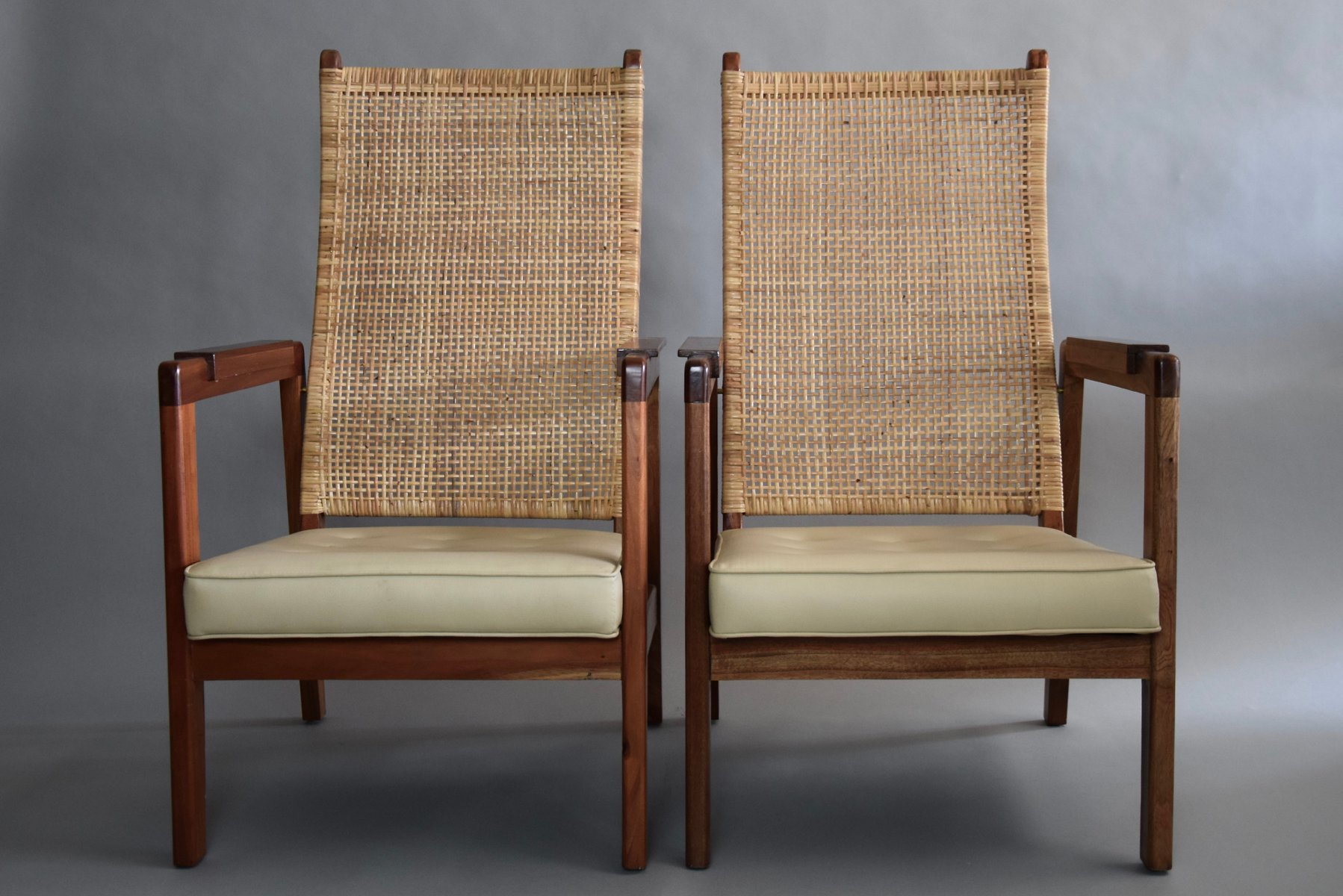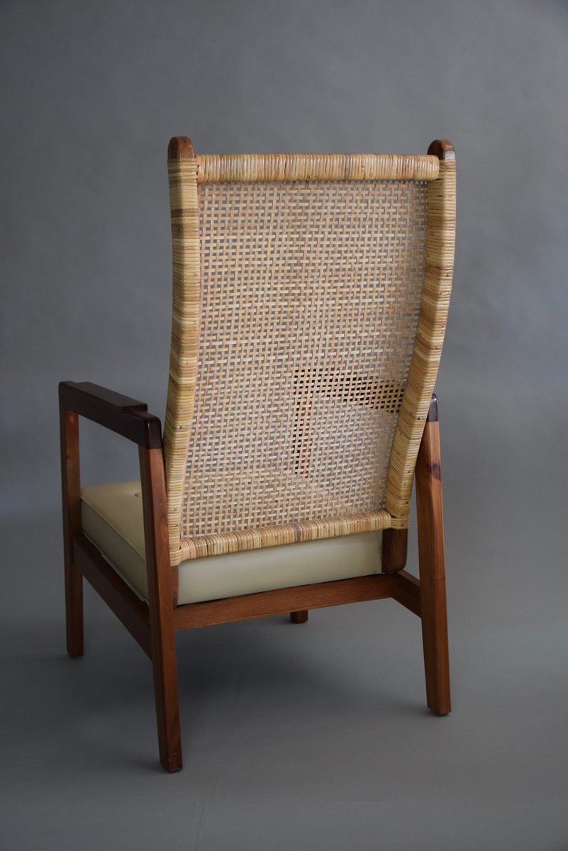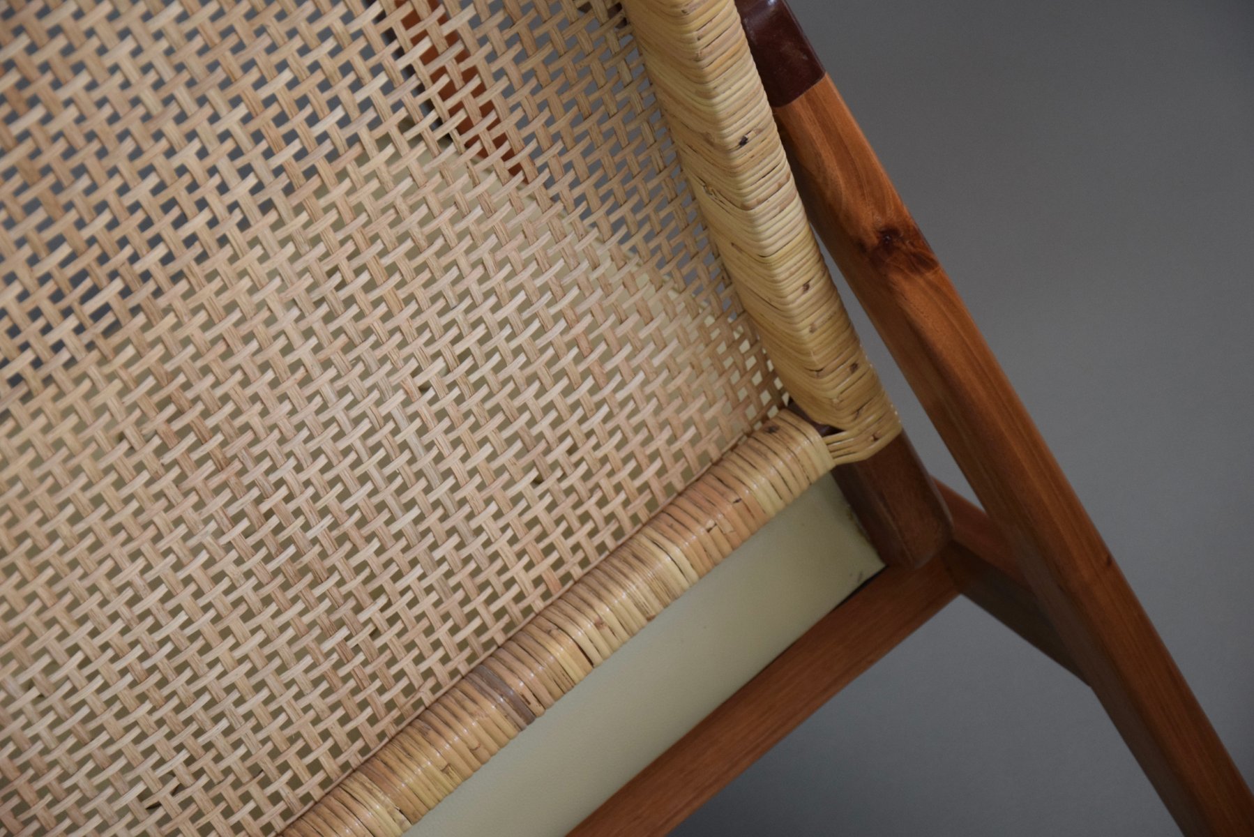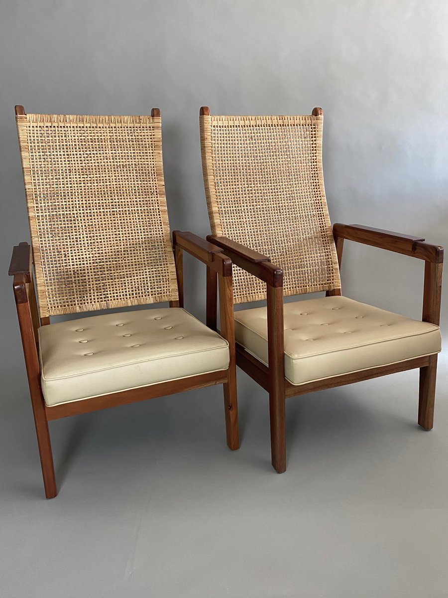 Set of Mid-Century Modern Lounge Chairs in Wood and Cane