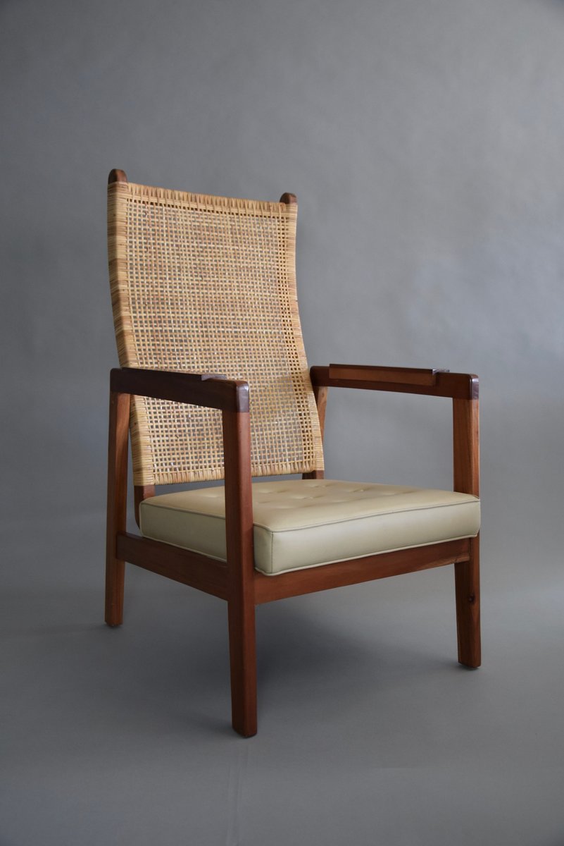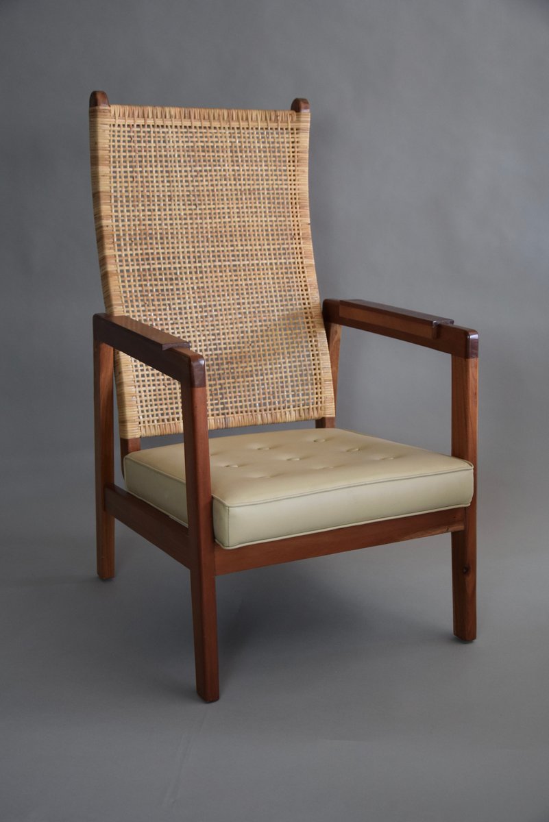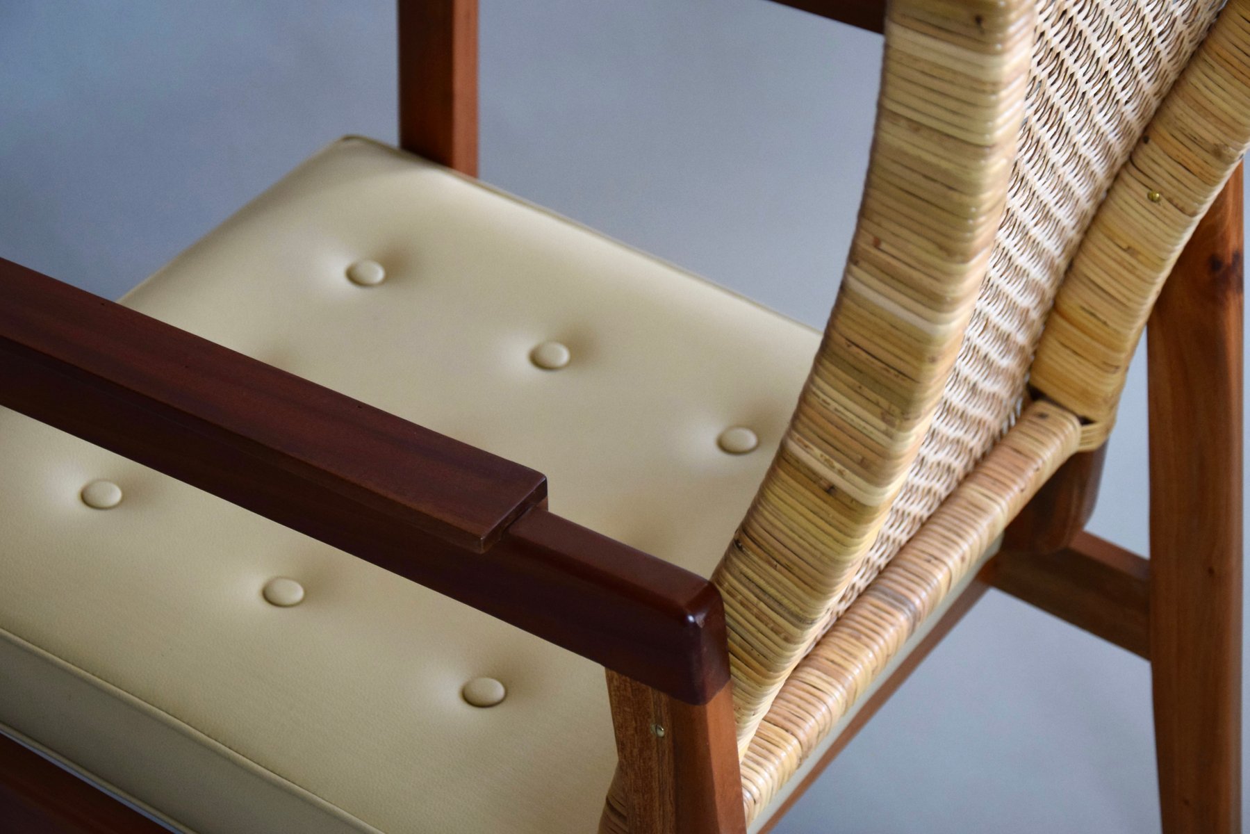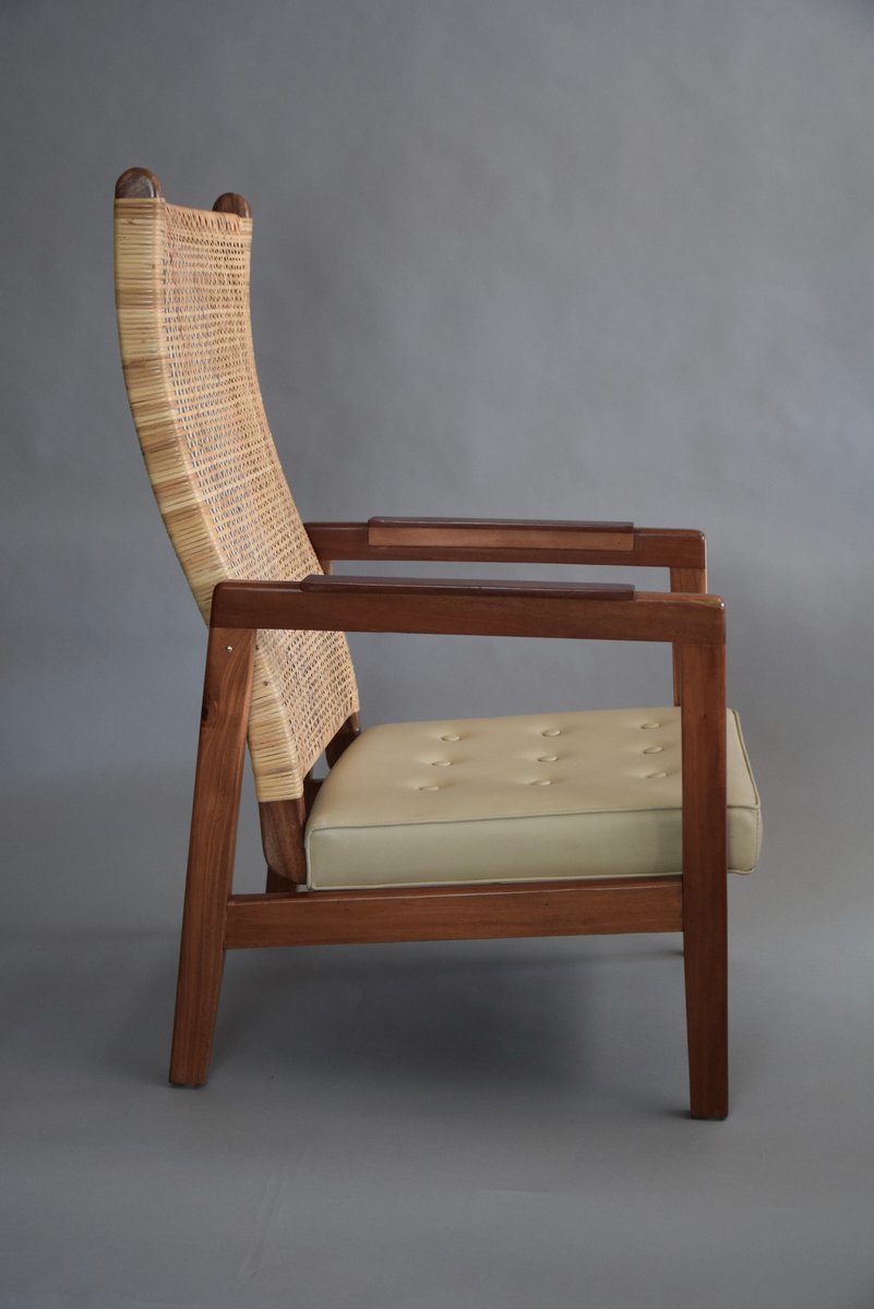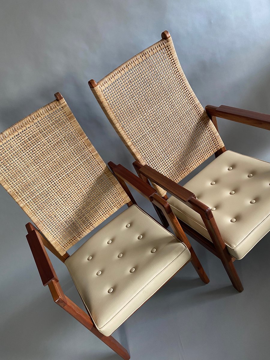 Set of Mid-Century Modern Lounge Chairs in Wood and Cane