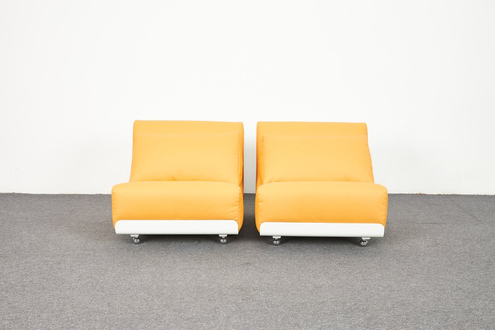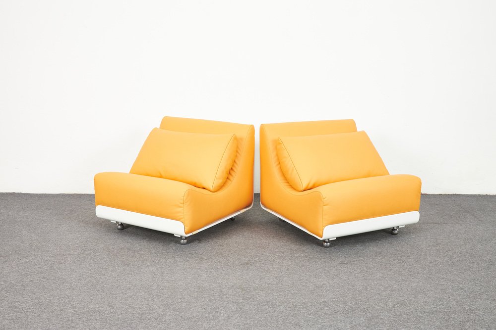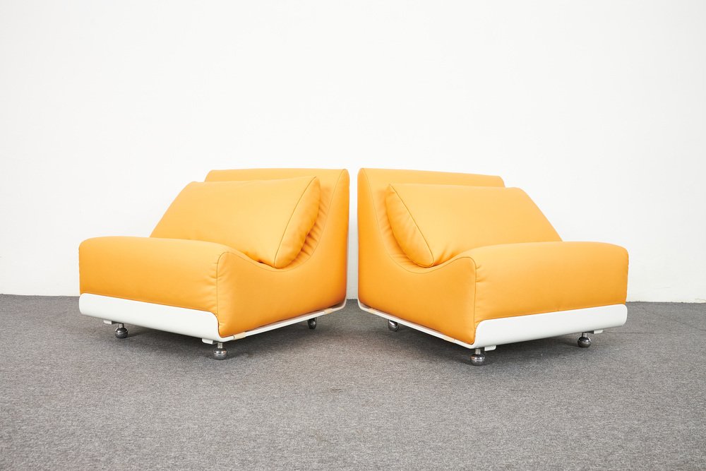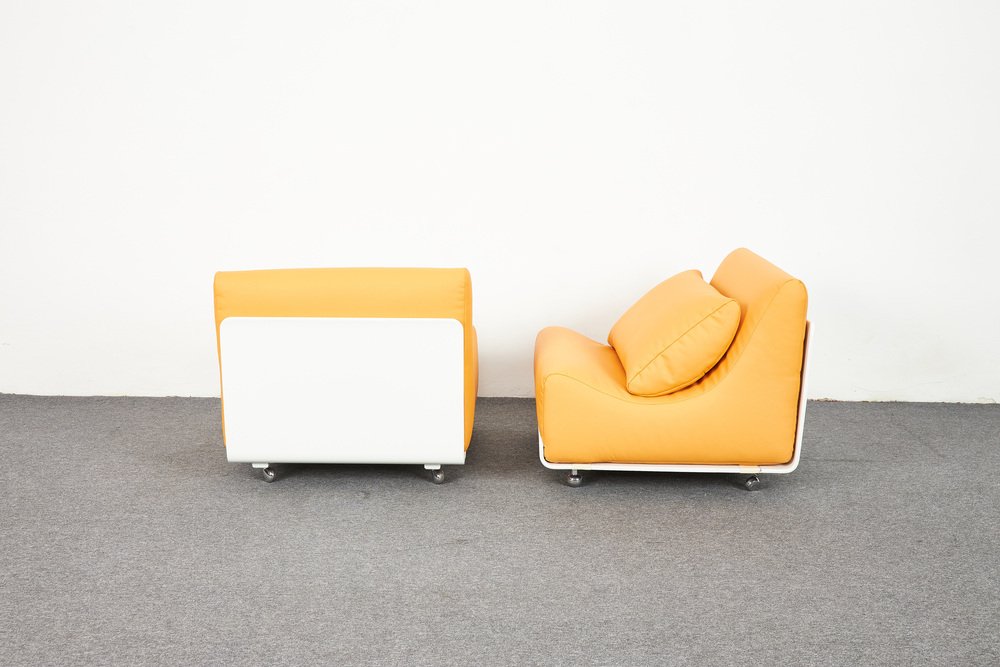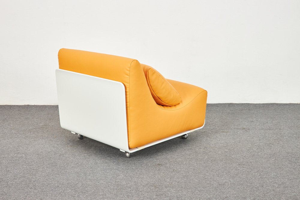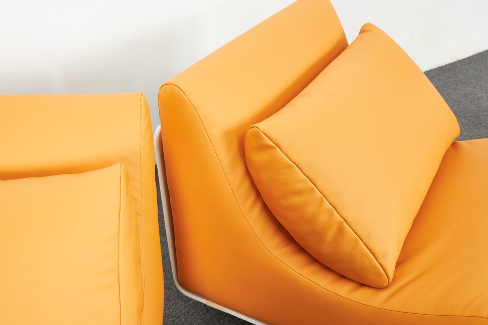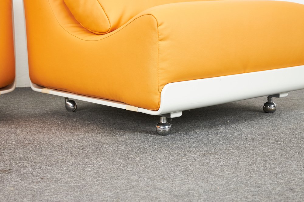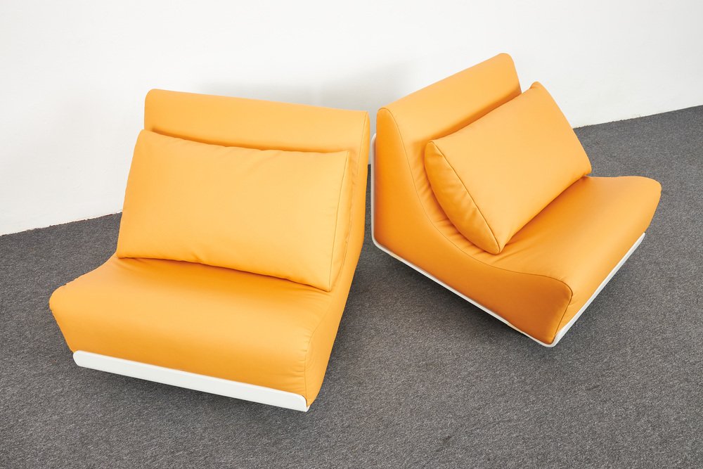 Set of Mid-Century Space Age Lounge Chair and Ottoman in Leather and Fiberglass attributed to Hungarian Applied Arts Company, 1970s