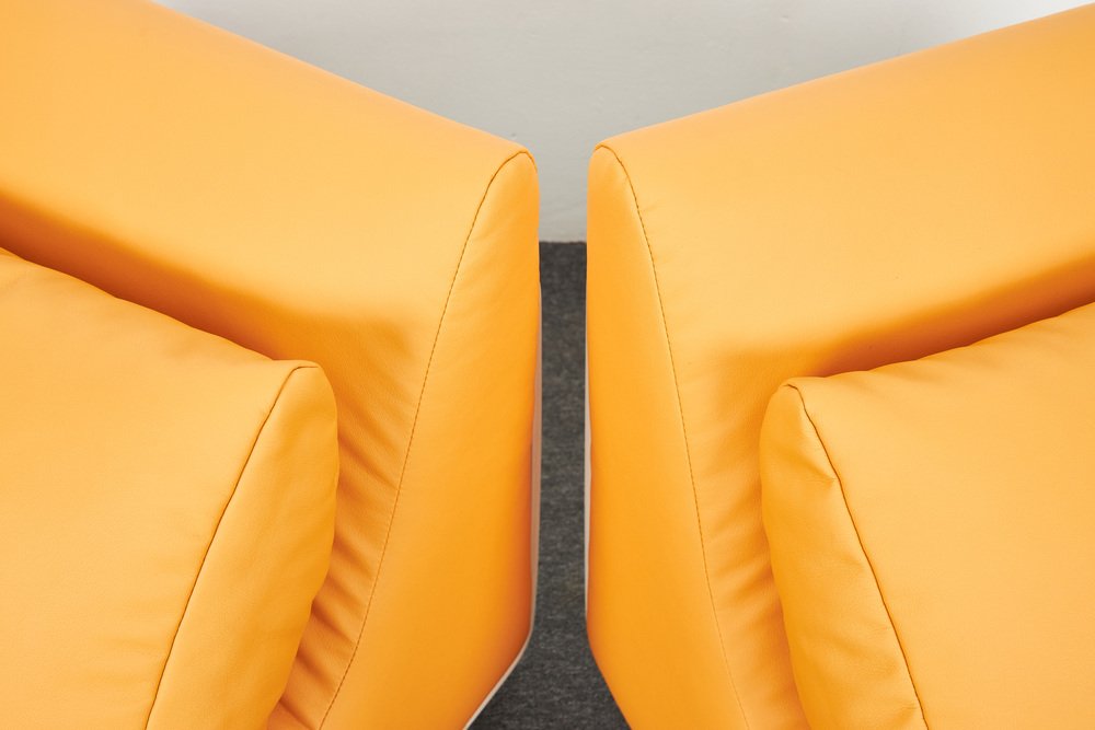 Vintage Safari Style Leather Armchairs, 1970s, Set of 4