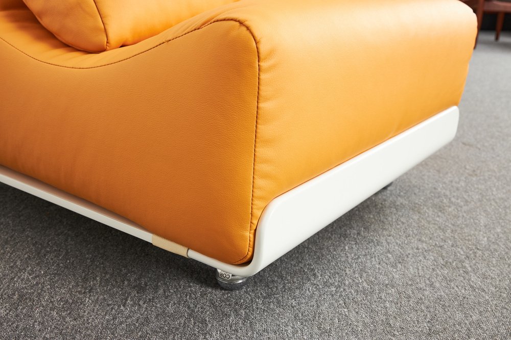 Mid-Century Style Tufted White Leather Senator Sofa, Hungary, 1986