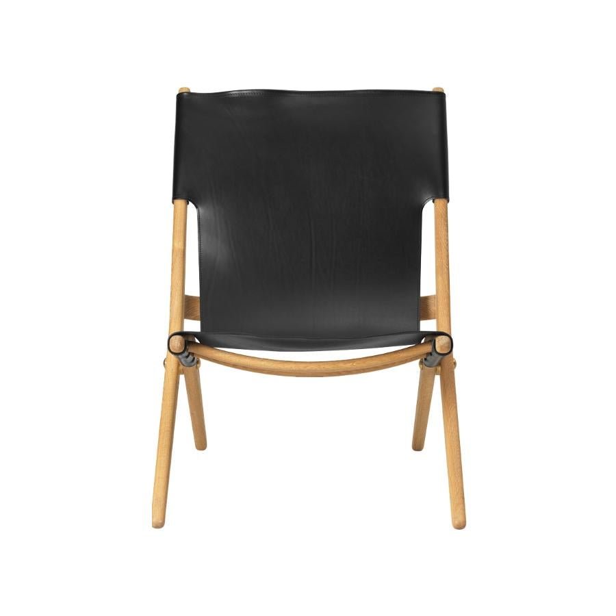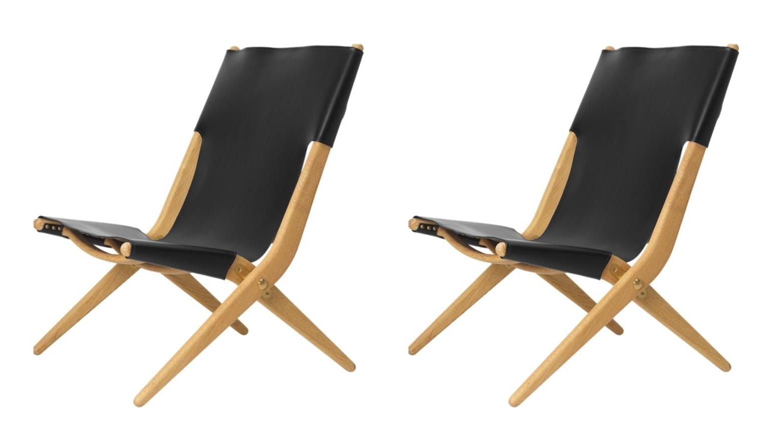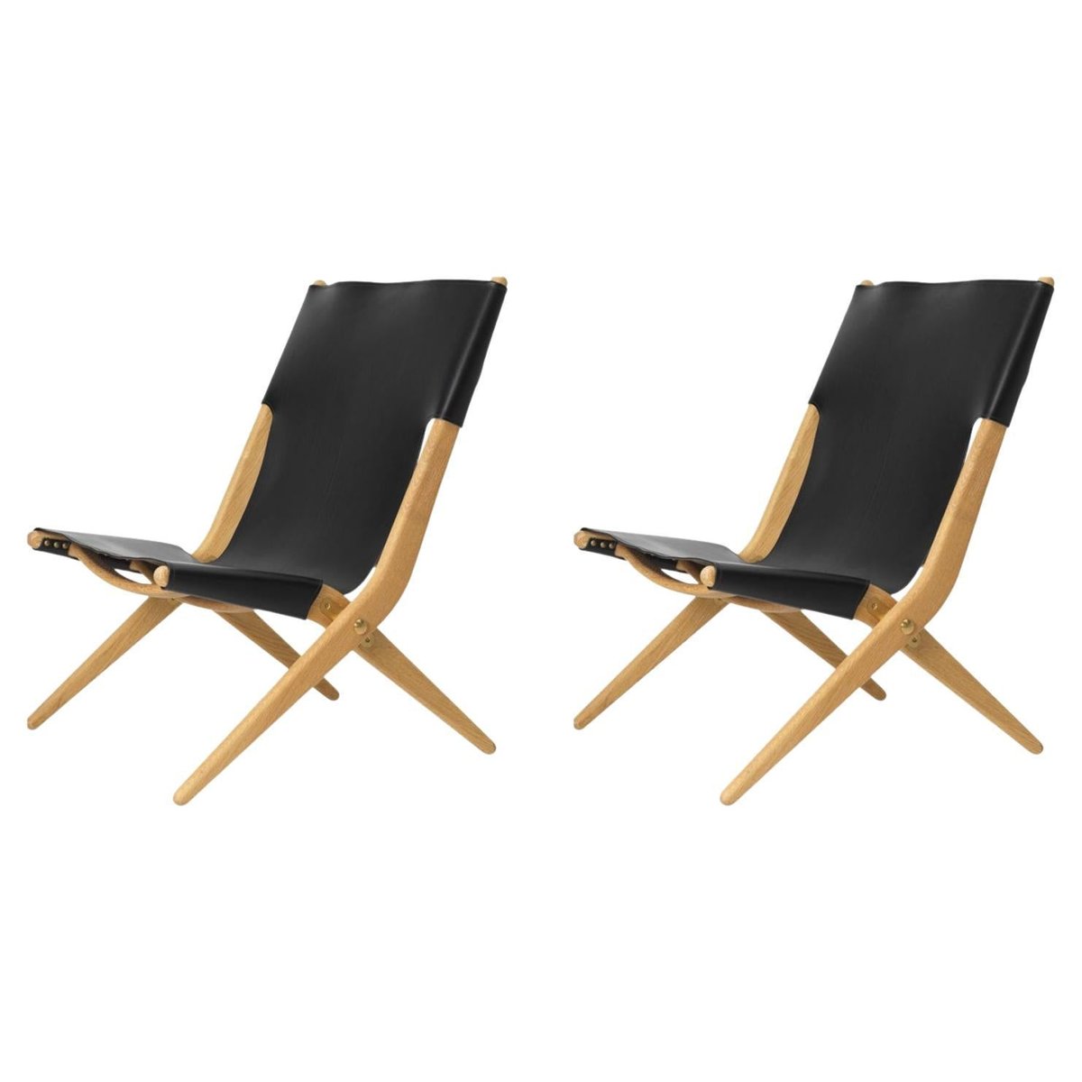 Set of Natural Oiled Oak and Black Leather Saxe Chairs by Lassen