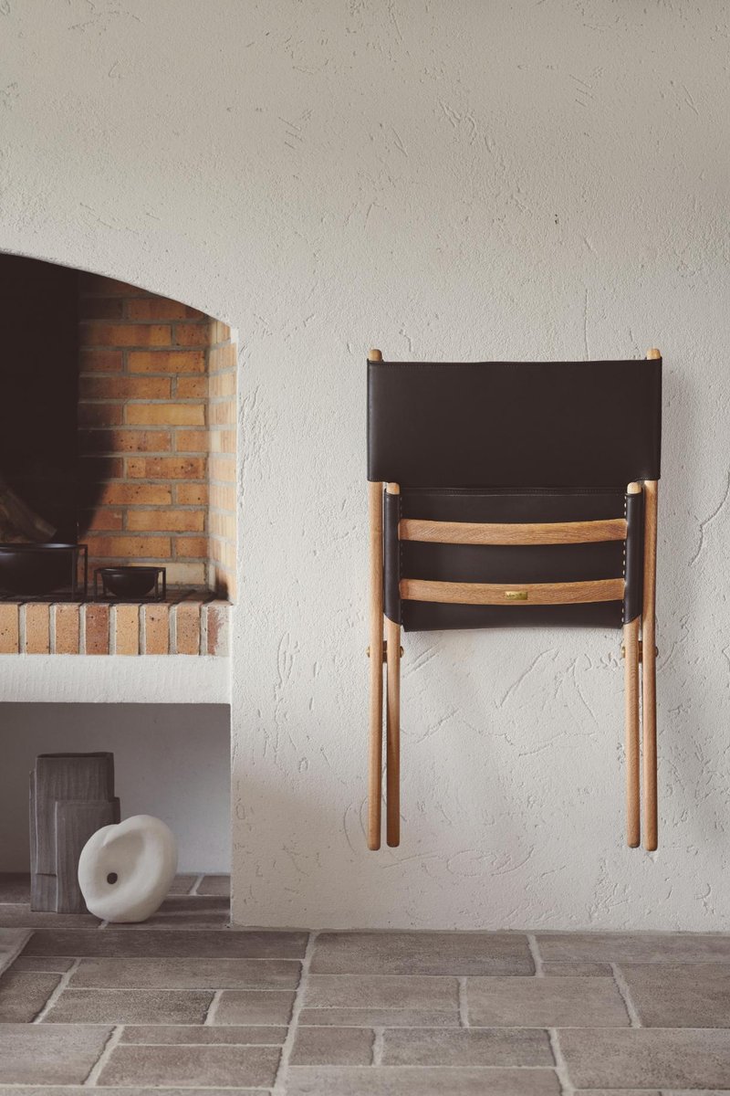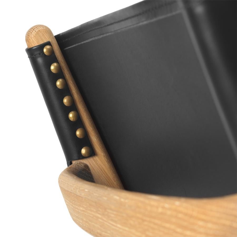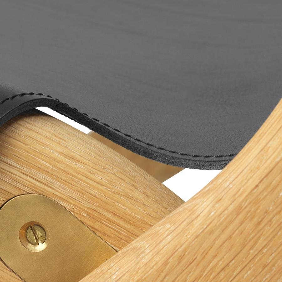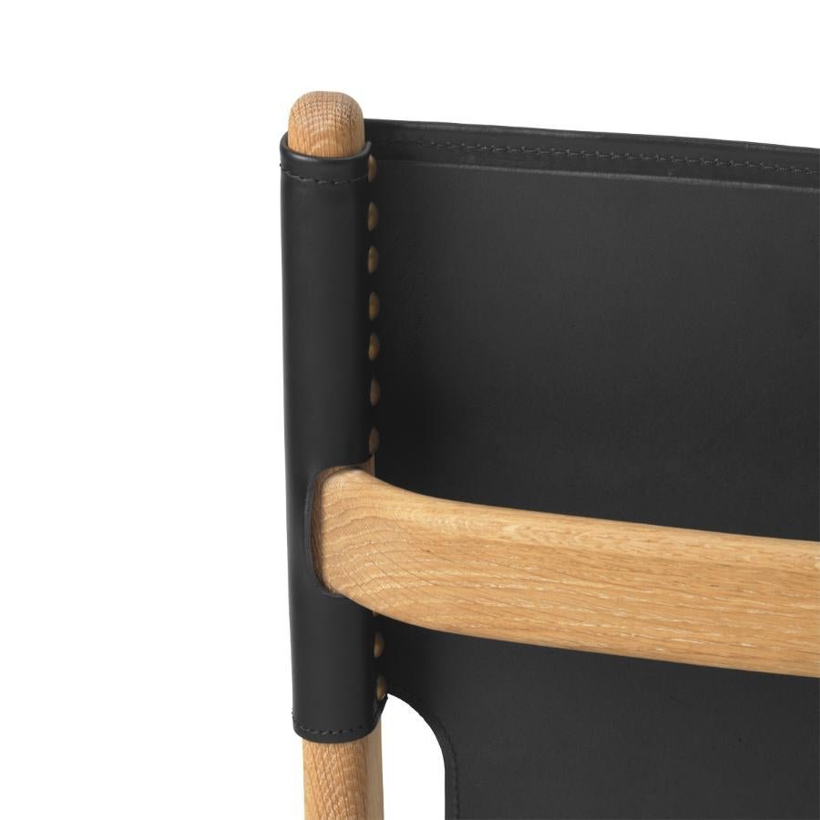 Set of Natural Oiled Oak and Black Leather Saxe Chairs by Lassen