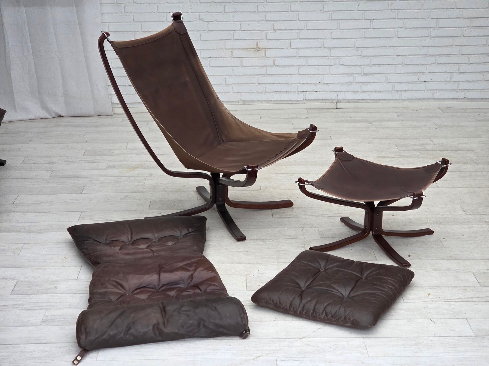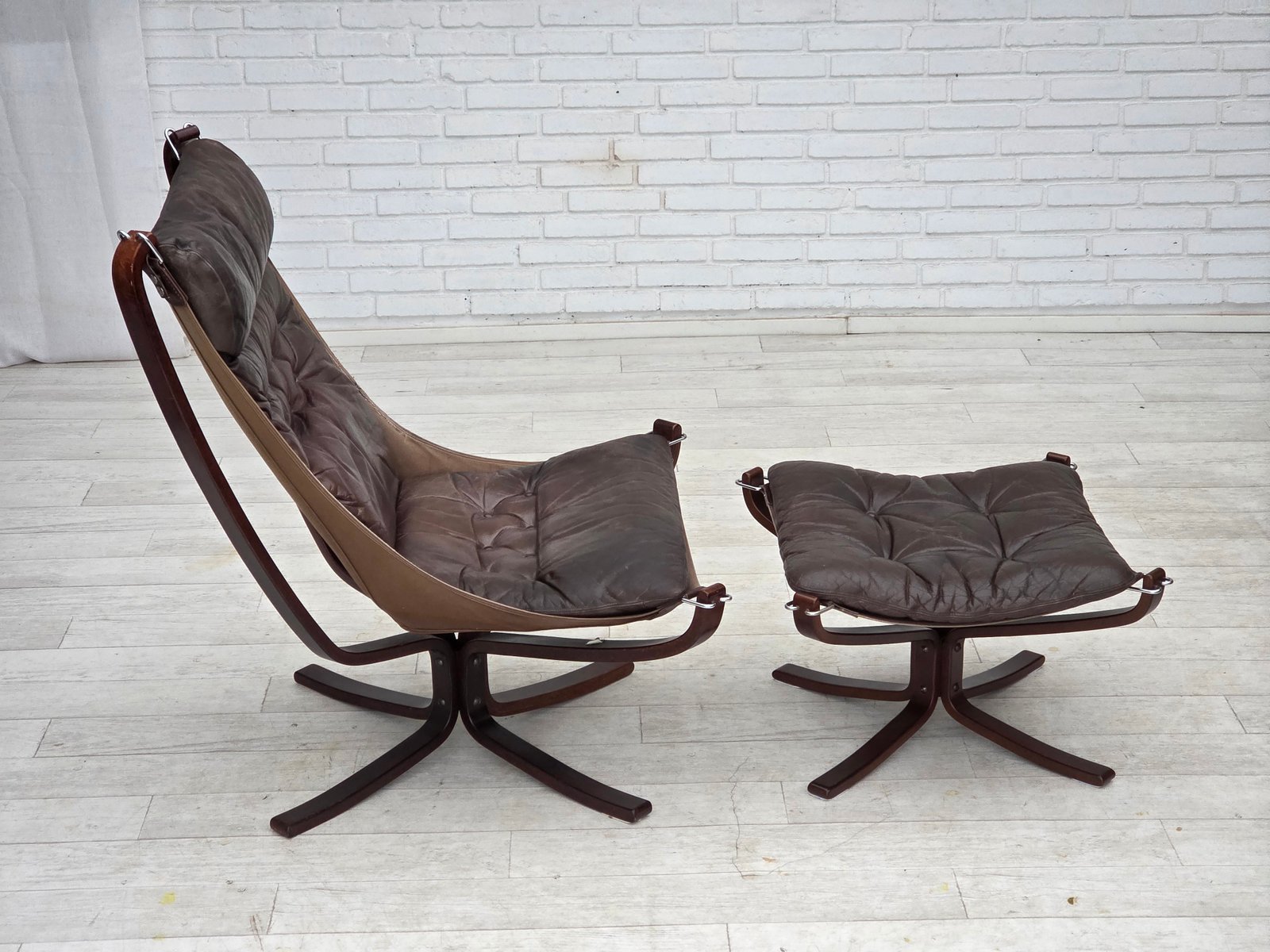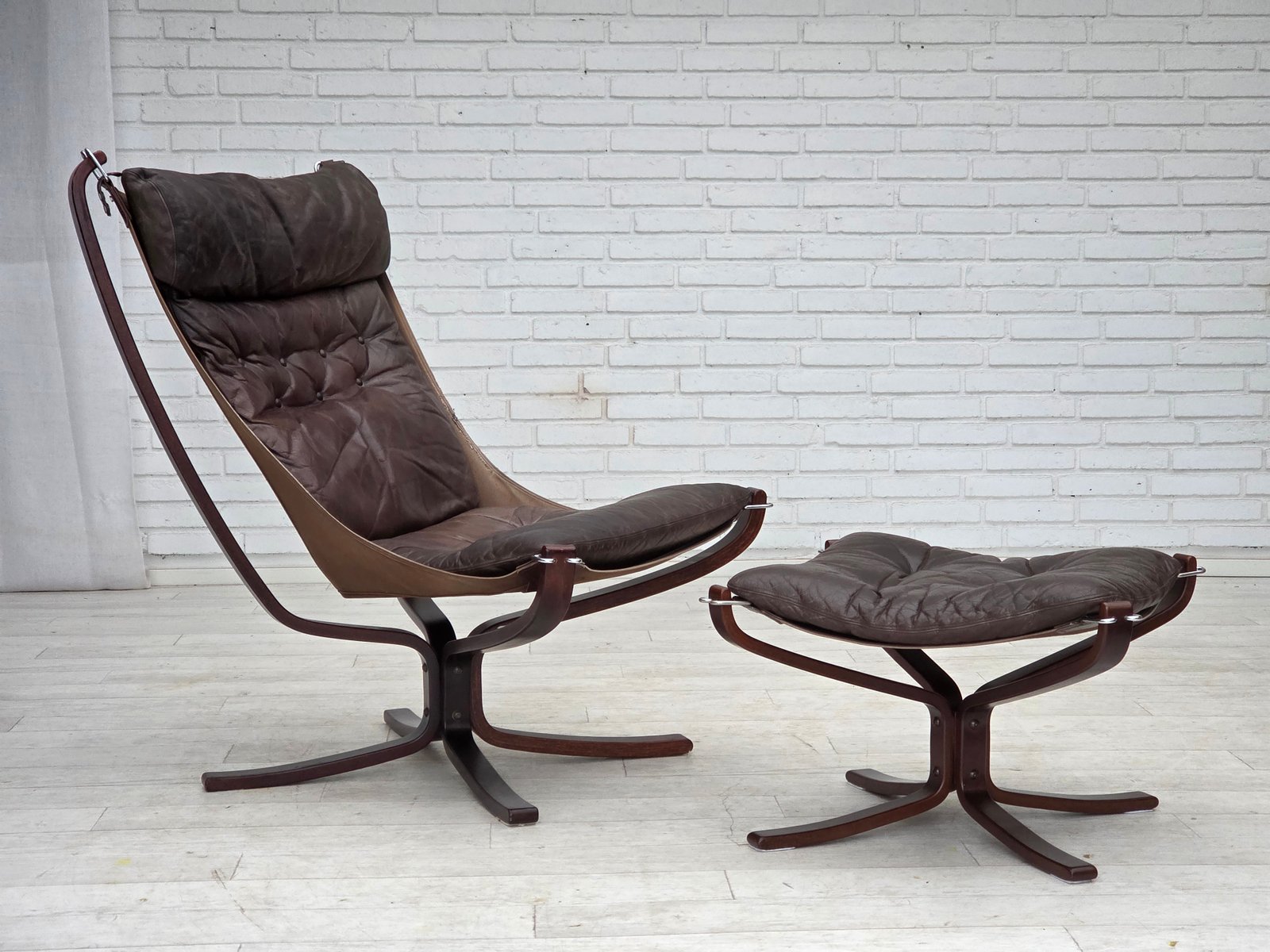 Set of Norwegian Falcon Lounge Chair and Ottoman by Sigurd Ressel, 1970s