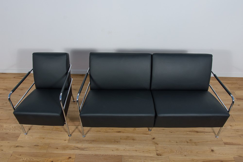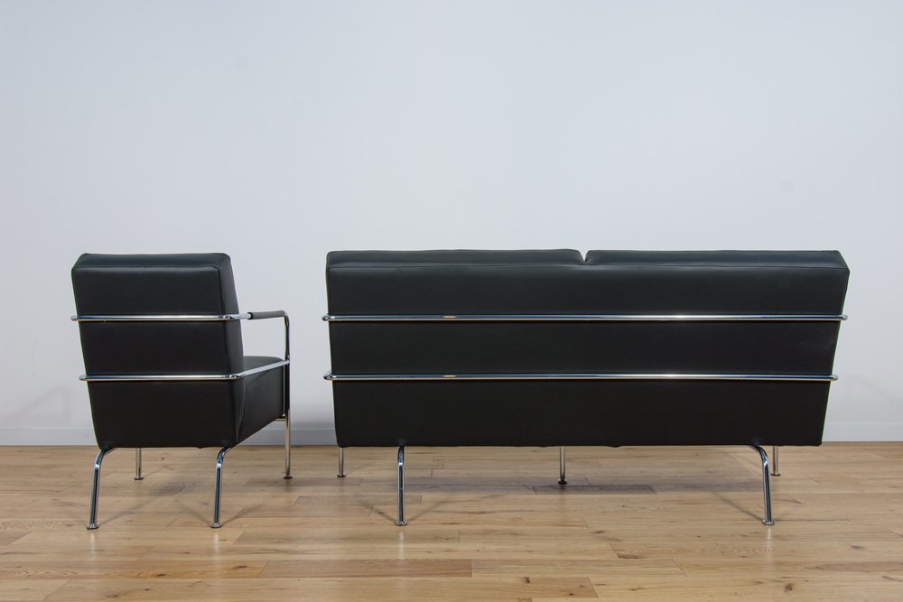 Set of Swedish Leather Sofa and Armchair by Gunilla Allard for Lammhults, 1990s