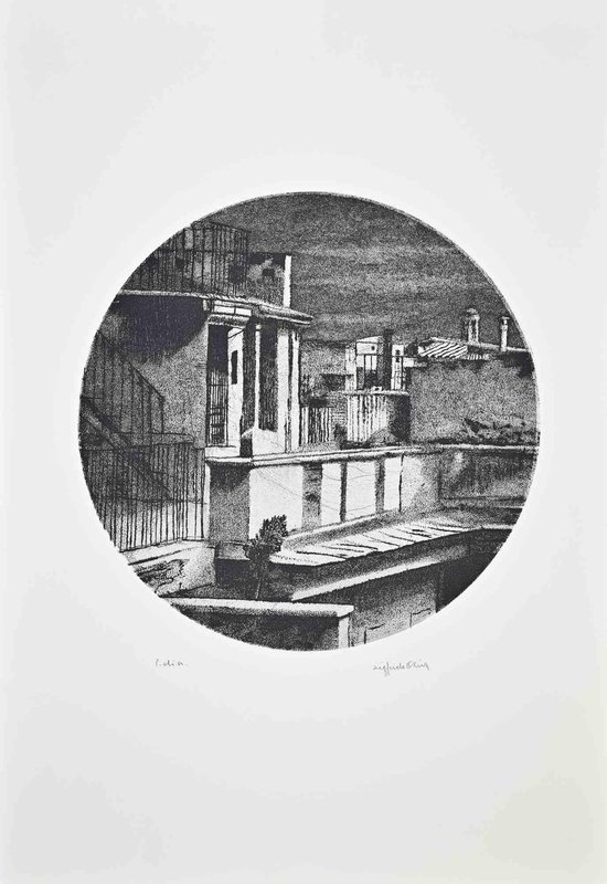 Sigfrido Oliva, Oval Cityscape, Etching, 1980s