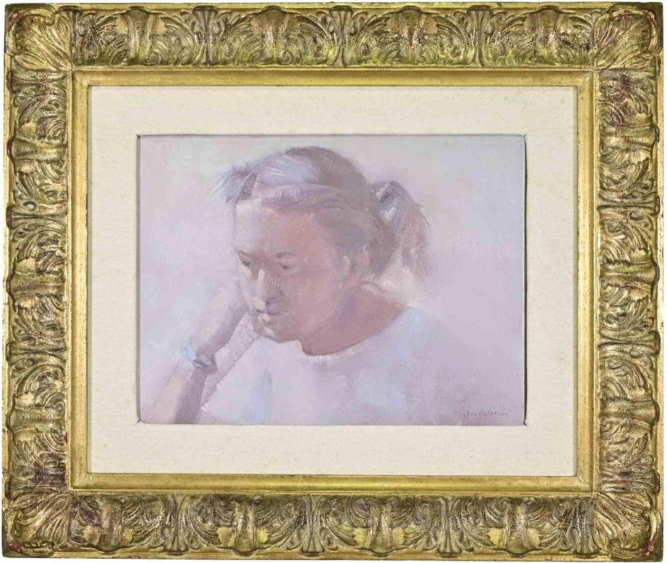 Sigfrido Oliva, Portrait, Oil Painting, 1980s, Framed