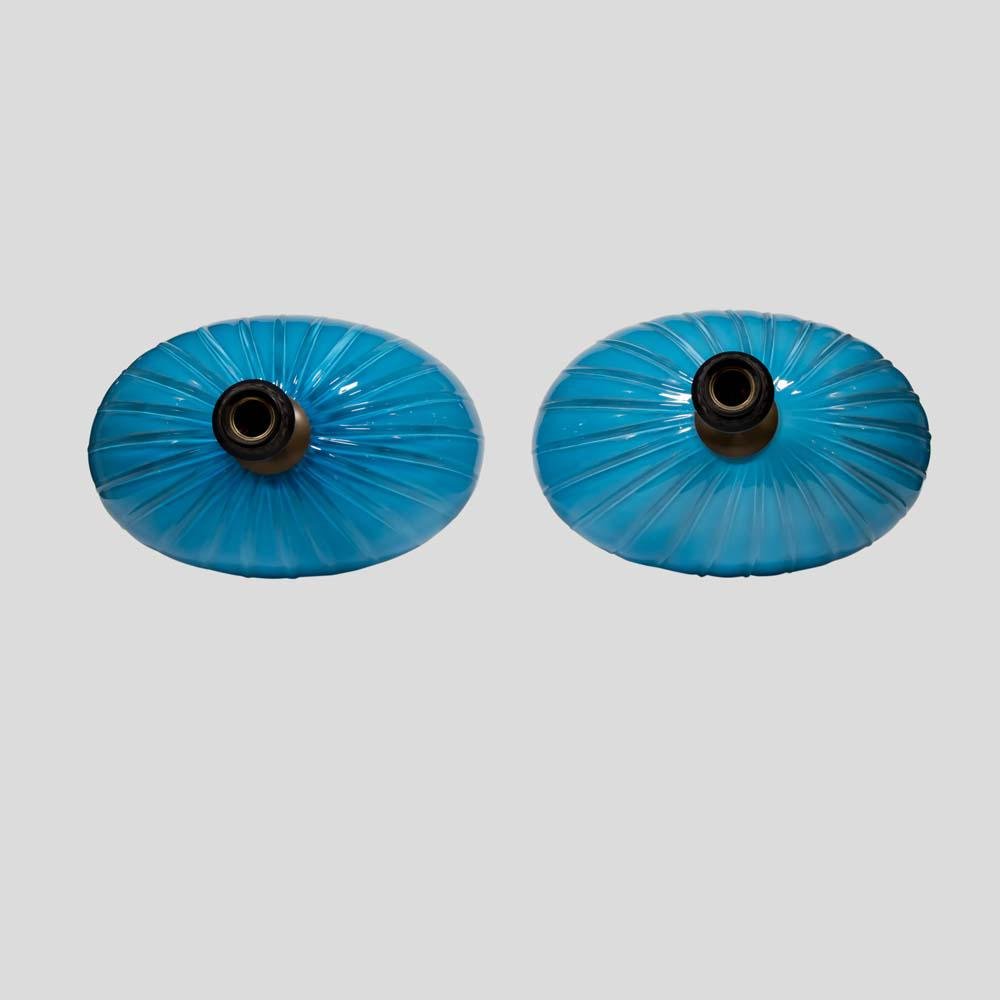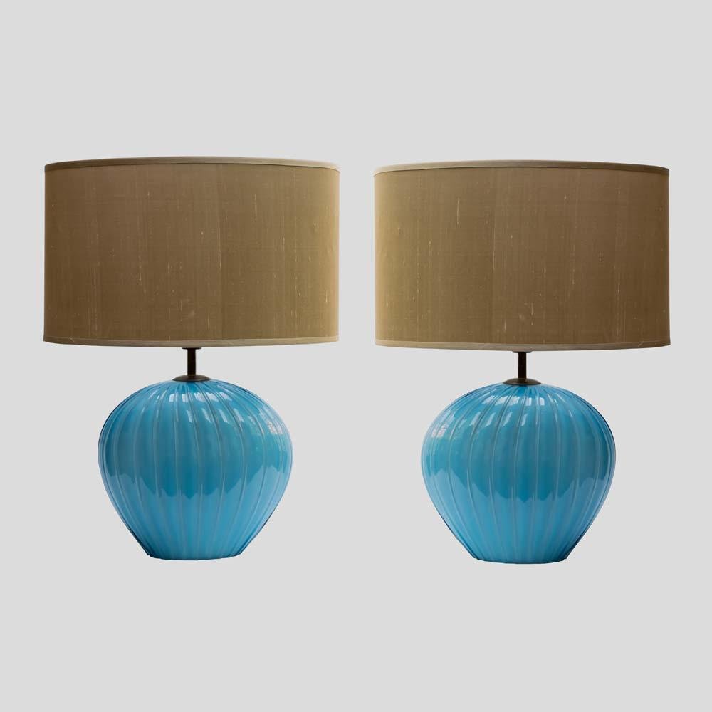 Sky Blue Ribbed Barovier Murano Glass Table Lamps, 1960s, Set of 2