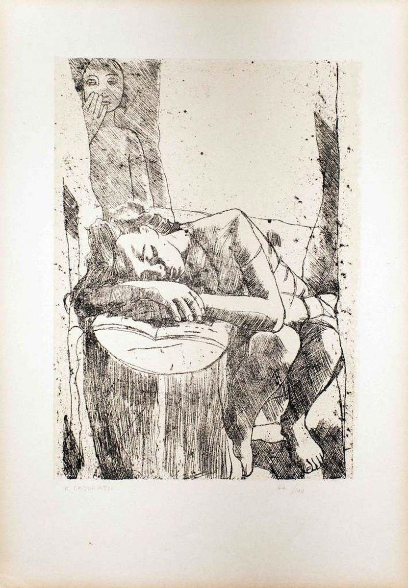 Sleeping Woman - Original Lithograph by Felice Casorati - 1946 1946