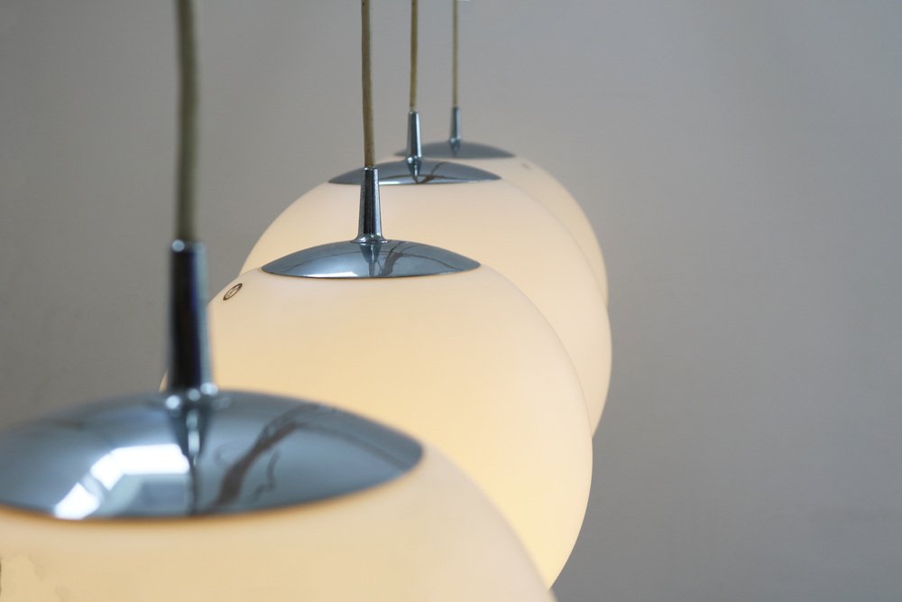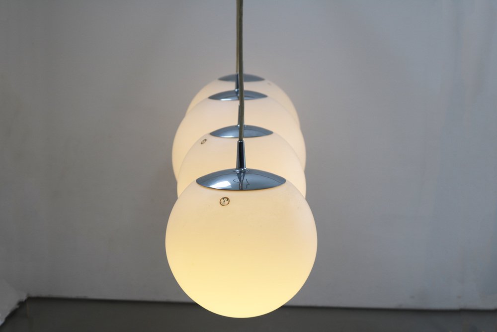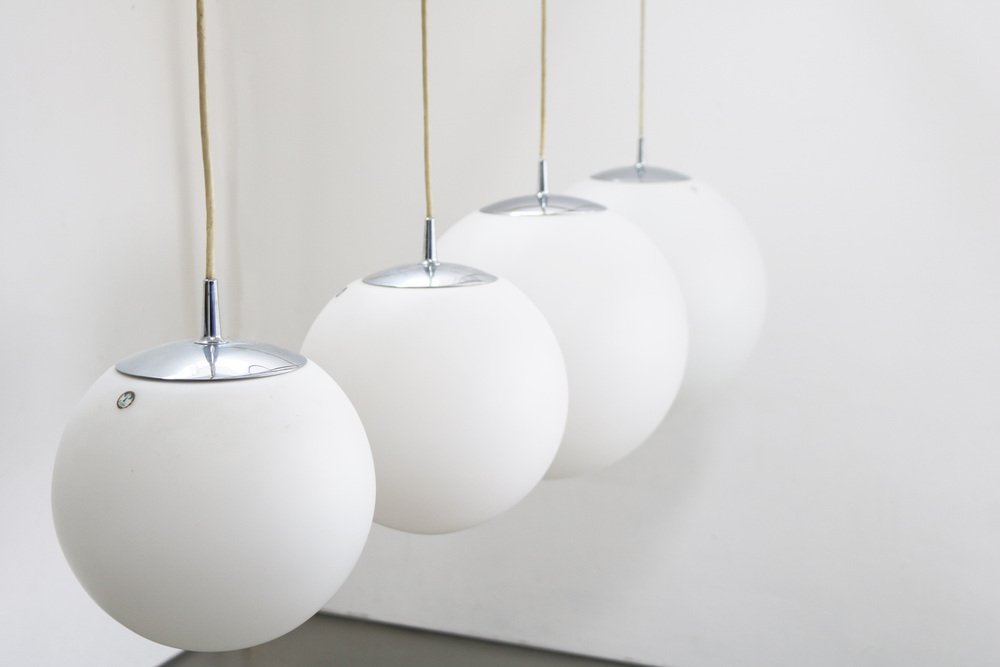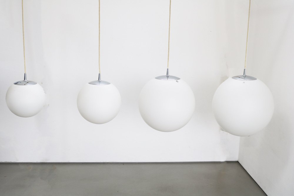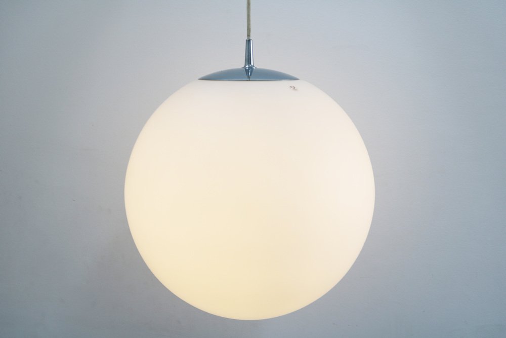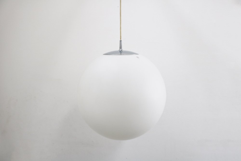 Space Age Globe Pendant Light Ball Lamp in Opal Glass Satin from Peill & Putzler, 1970s