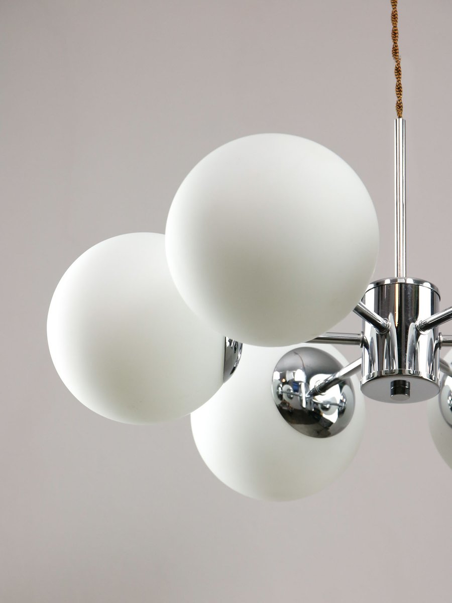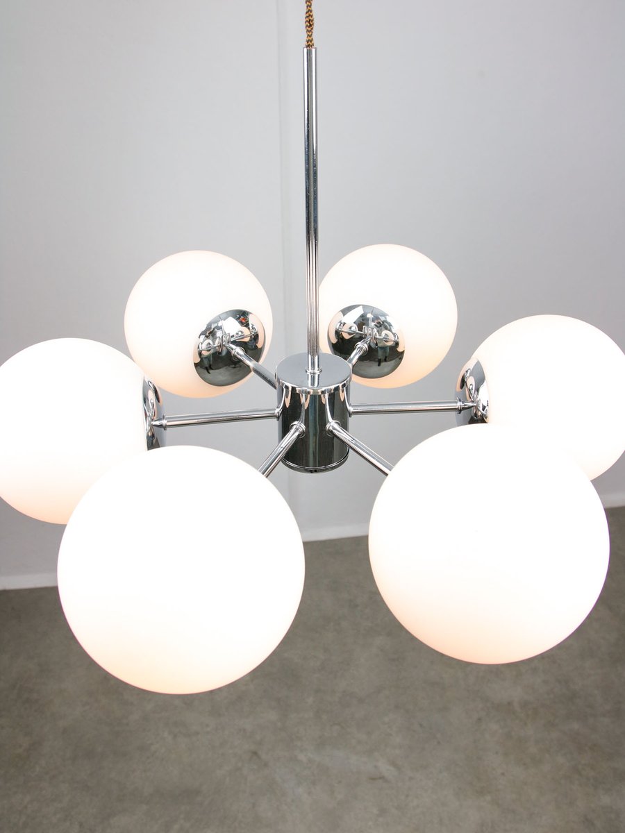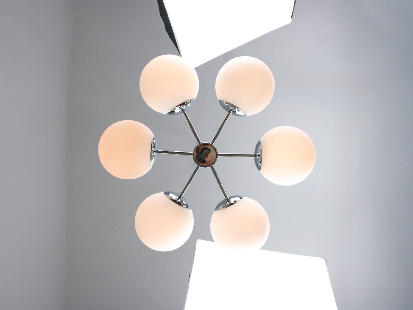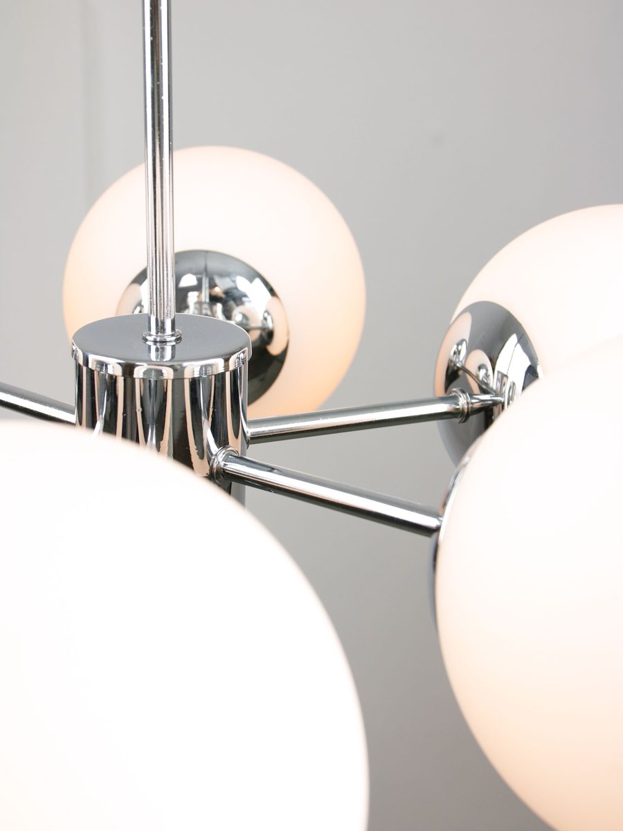 Space Age Italian Sputnik Chrome and Opaline Chandelier, 1970s