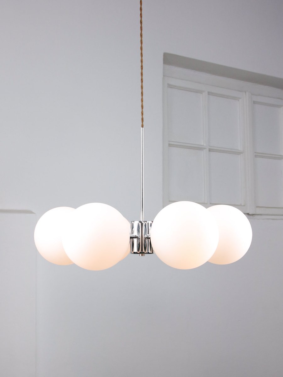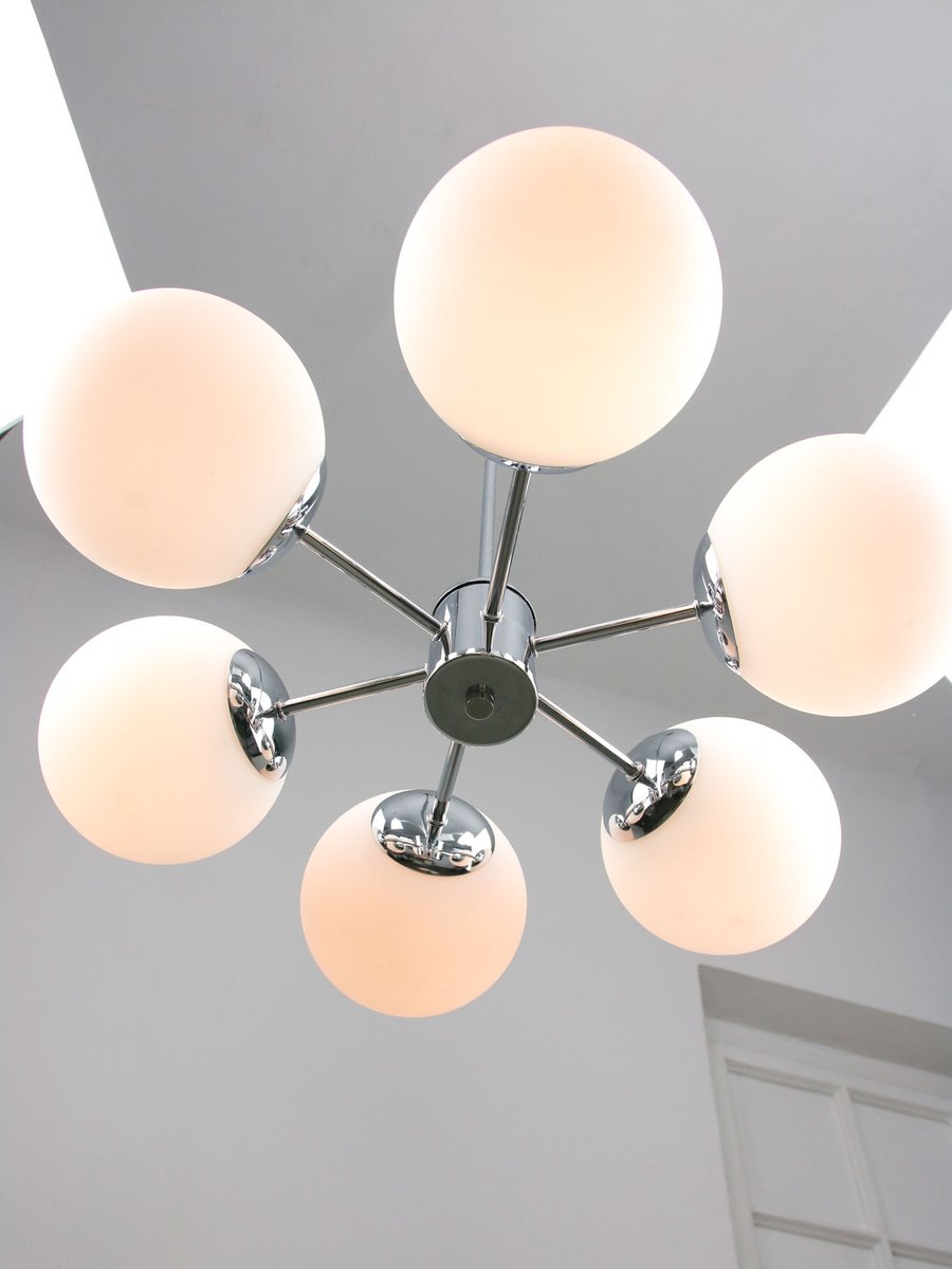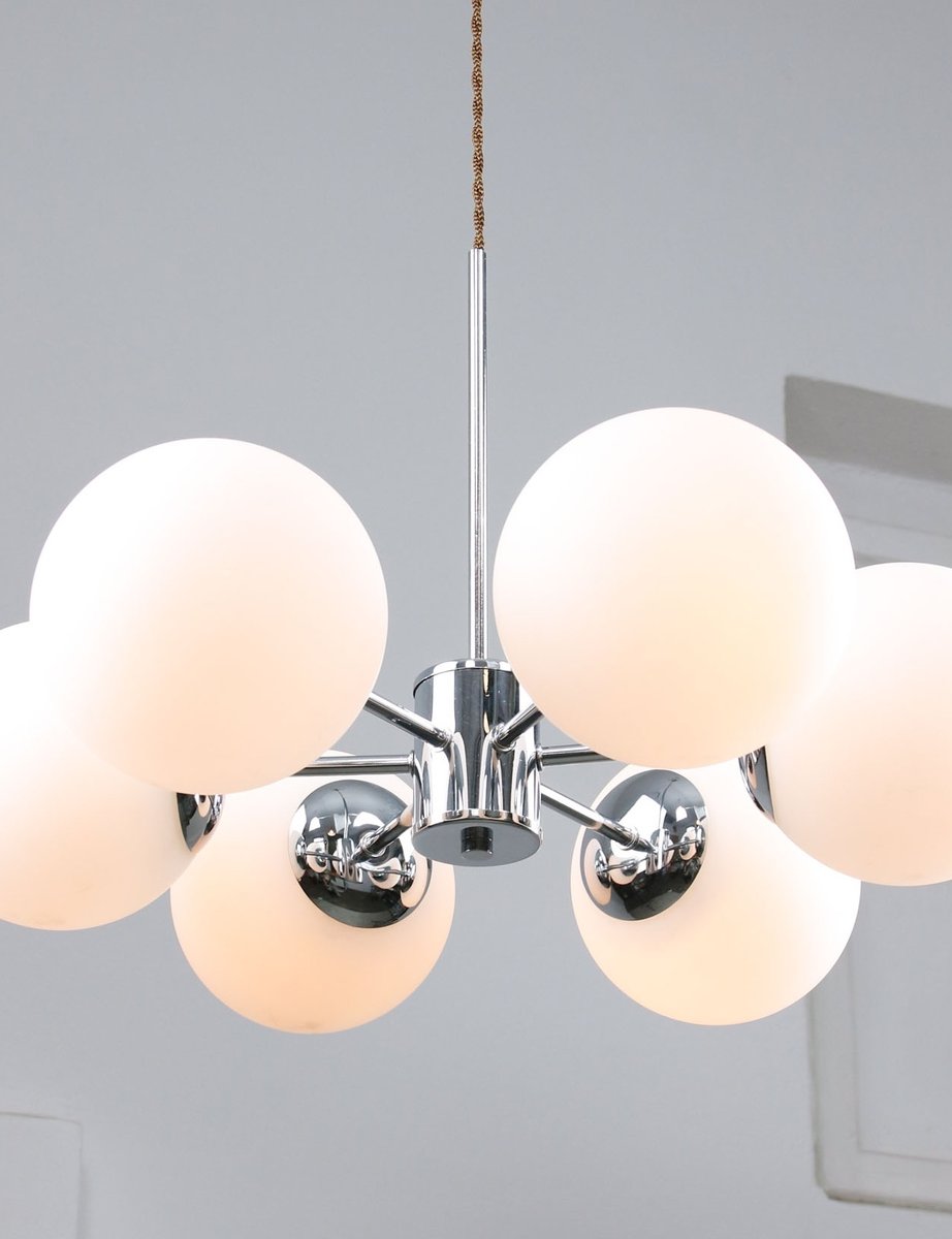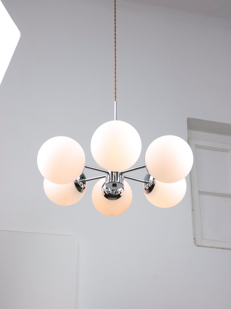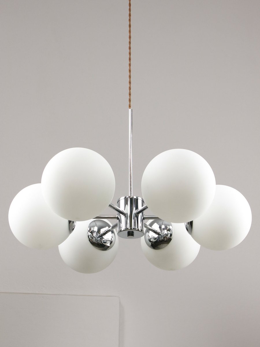 Space Age Italian Sputnik Chrome and Opaline Chandelier, 1970s