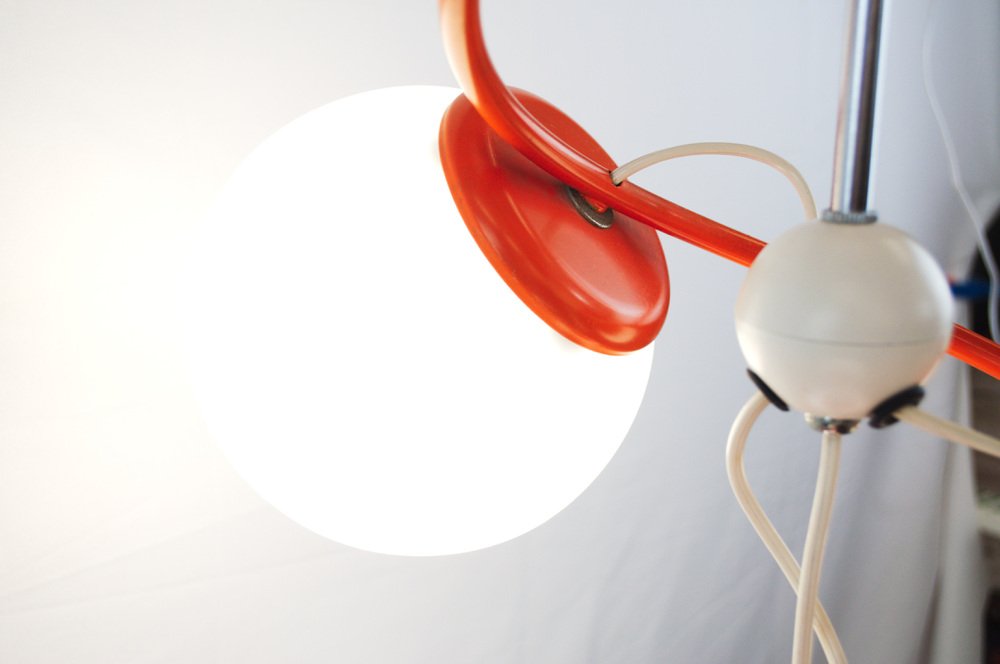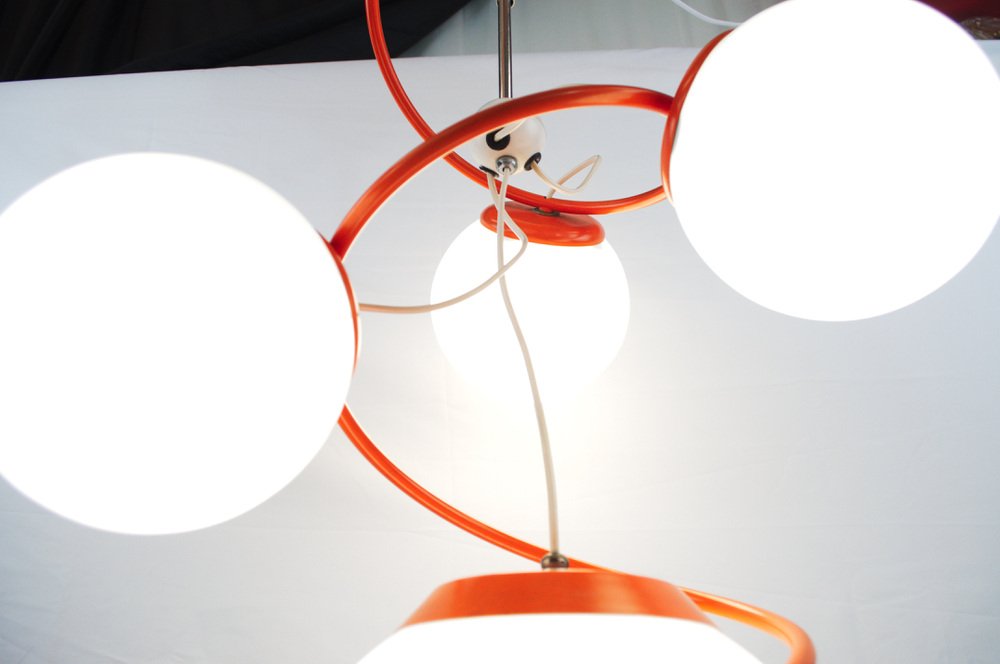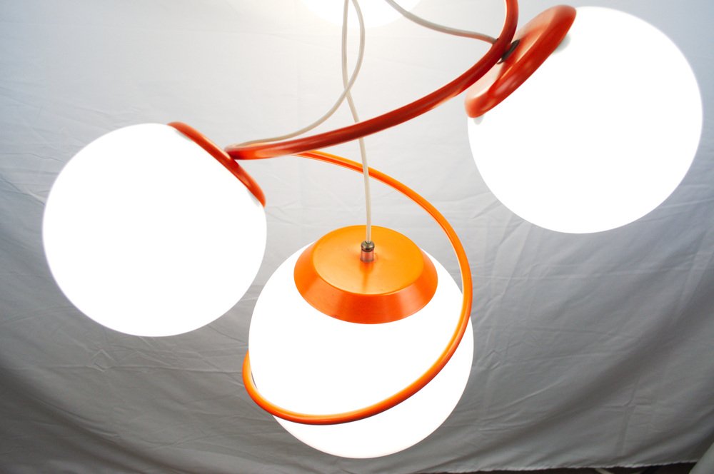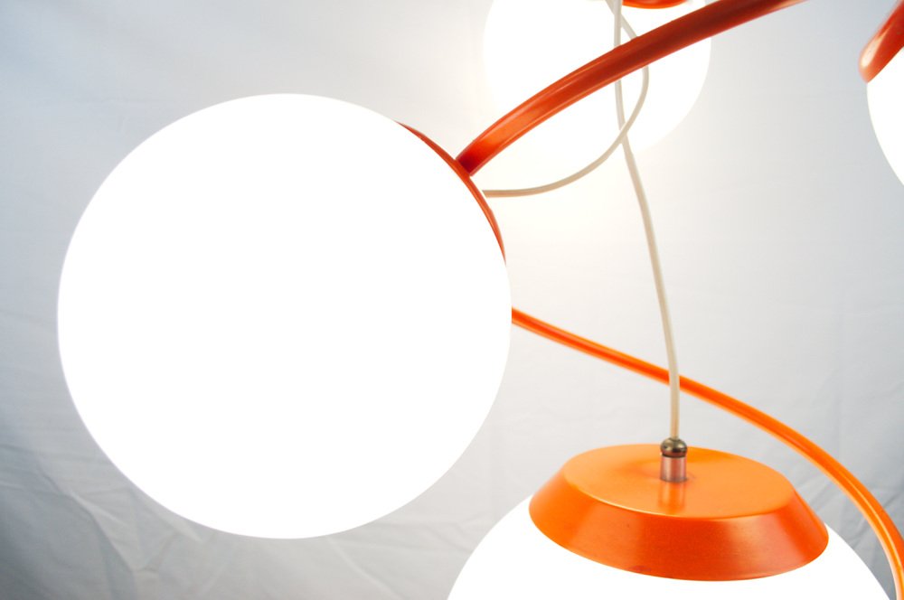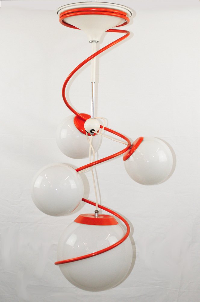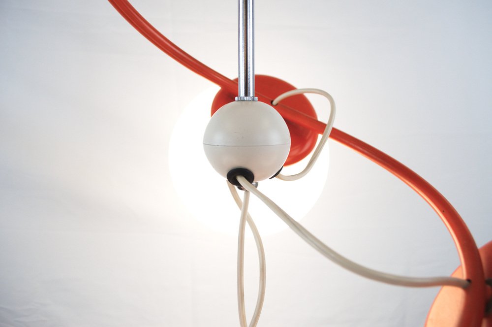 Space Age Orange & White 4-Light Ceiling Lamp in the Style of Gino Sarfatti, 1970s