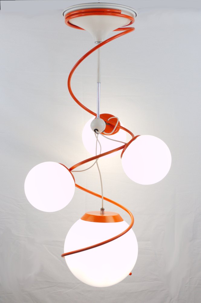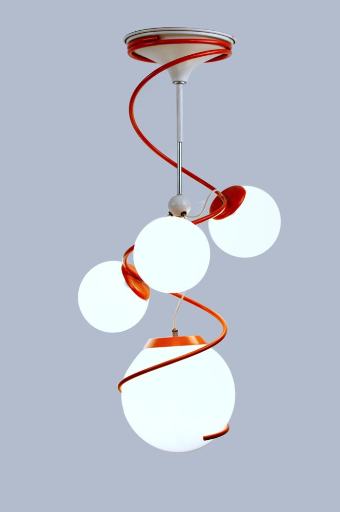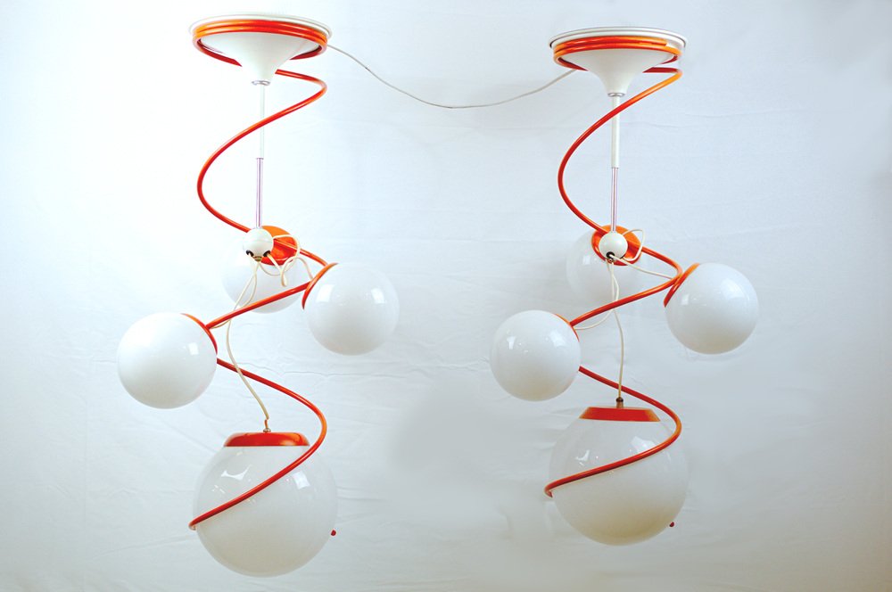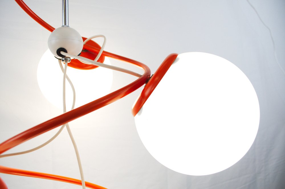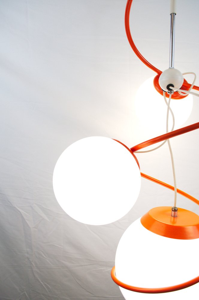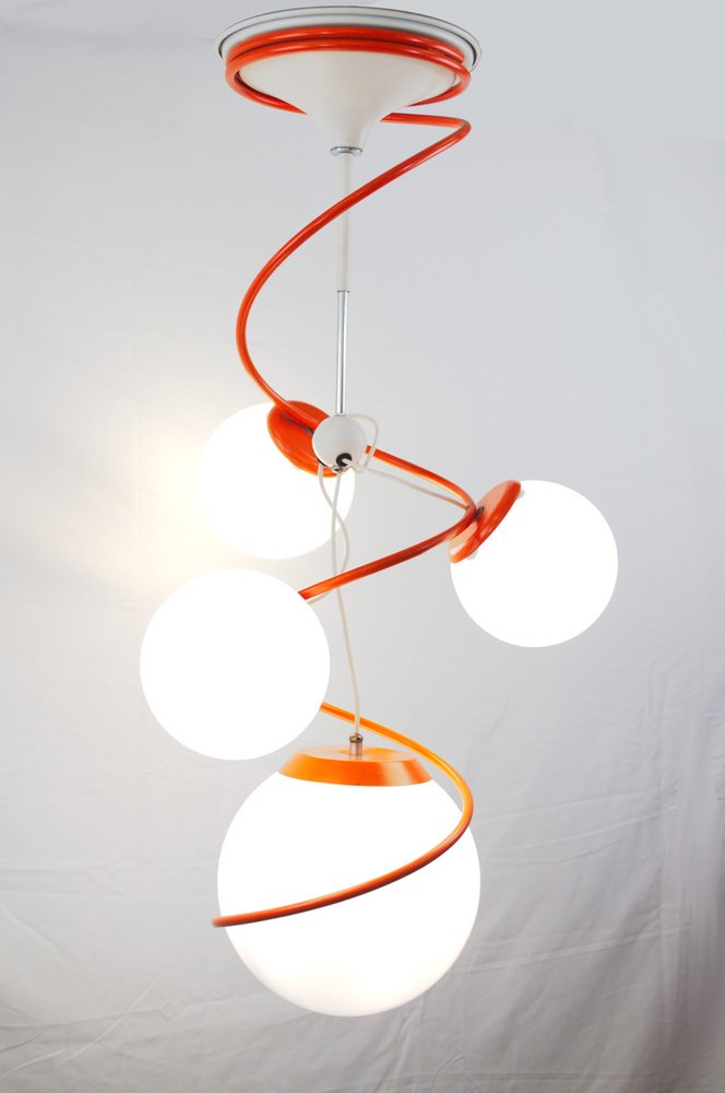 Space Age Orange & White 4-Light Ceiling Lamp in the Style of Gino Sarfatti, 1970s
