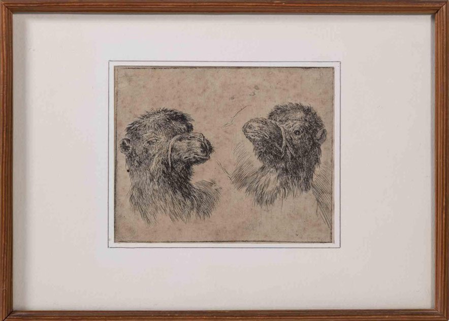 Stefano Della Bella, Camel Study, Original Etching, 1640s, Framed