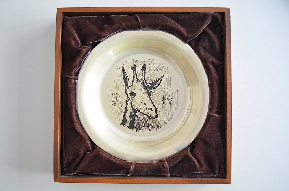 Sterling Silver Plated Wall Plate Giraffe by Bernard Buffet, 1970s