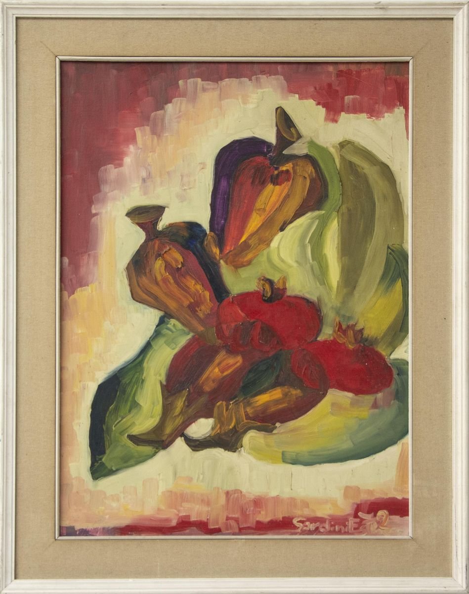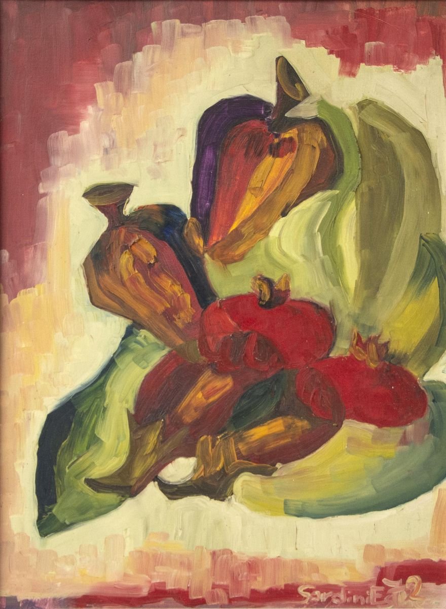 Still Life - Original Oil on Board by E. Sardini - 1972 1972
