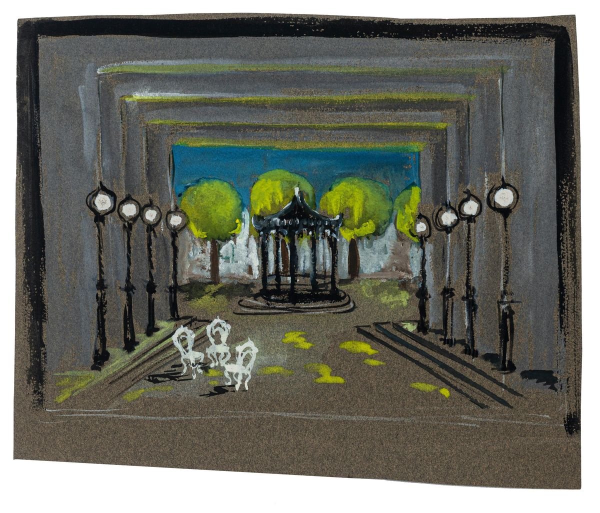 Study for Scenography - Tempera and White Lead on Cardboard - 20th Century 20th Century