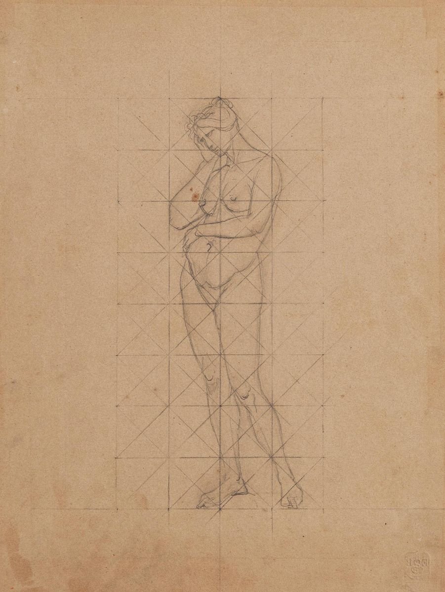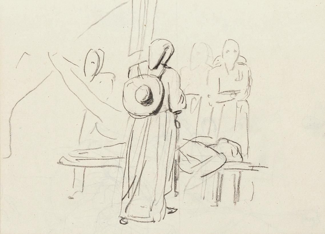 Study of Figures - Ink and Pencil Drawing by M. Dumas - Mid 19th Century 1850 ca.