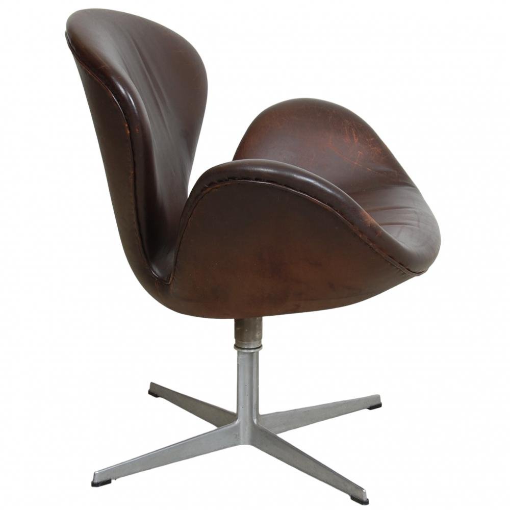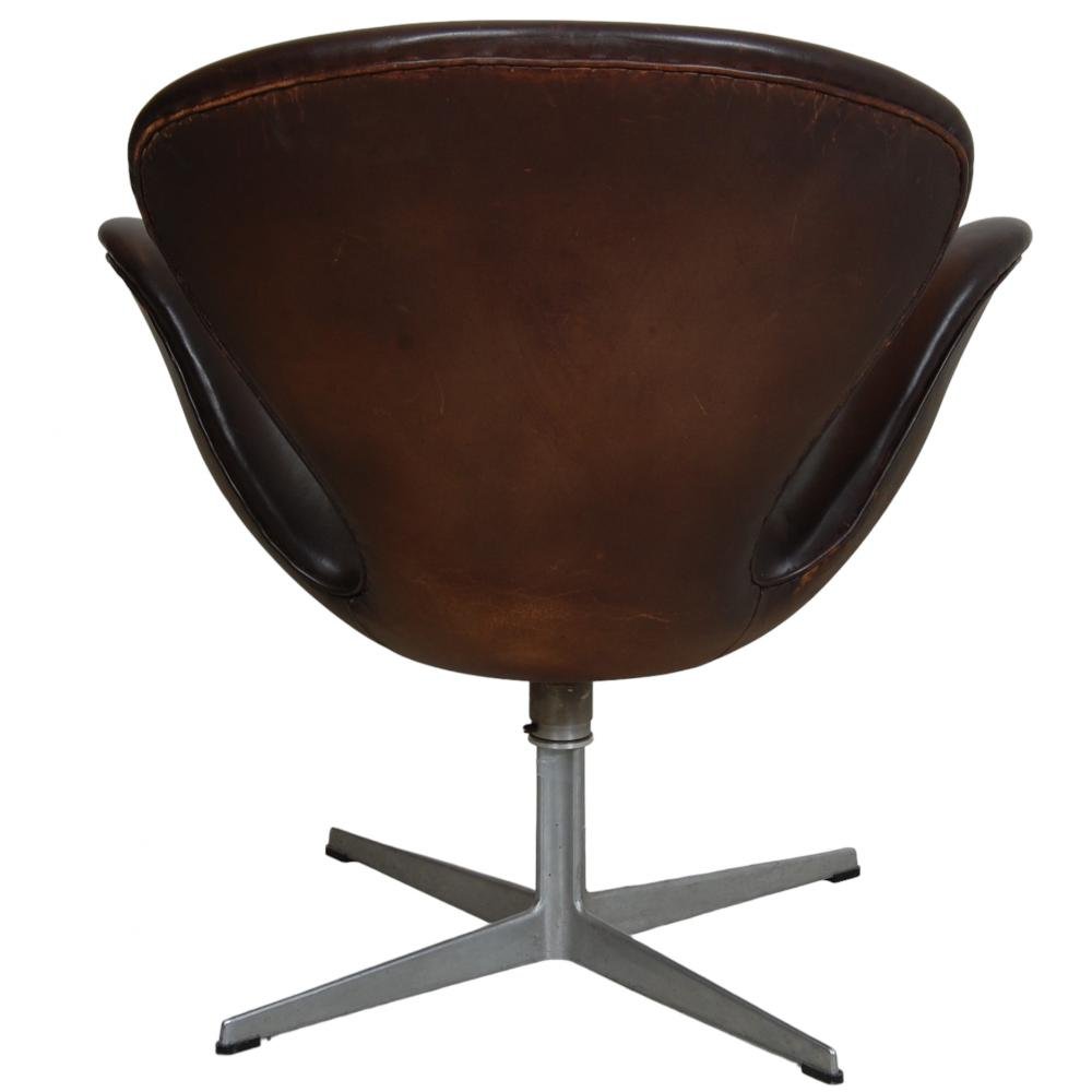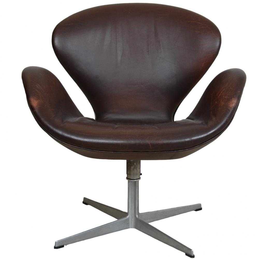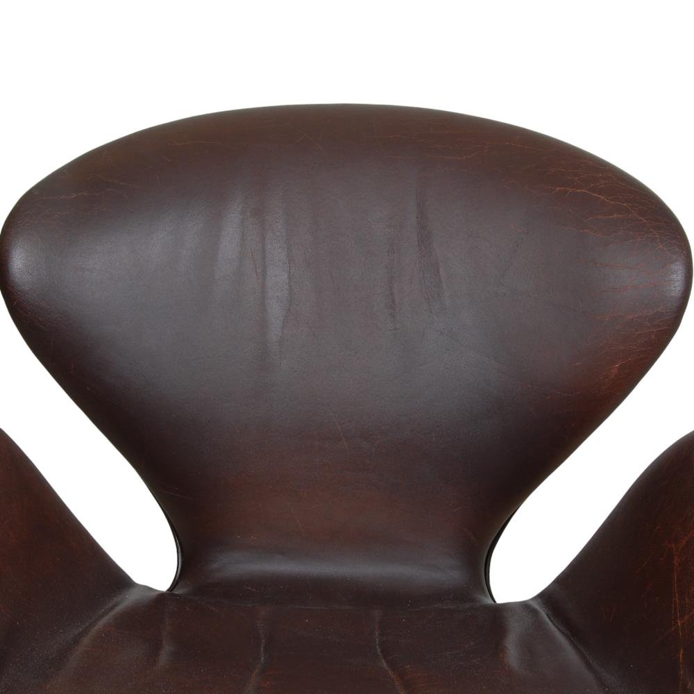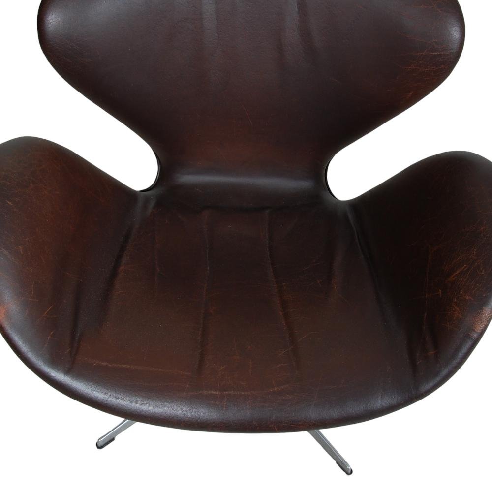 Swan Chair in Brown Patinated Leather by Arne Jacobsen for Fritz Hansen, 1970s