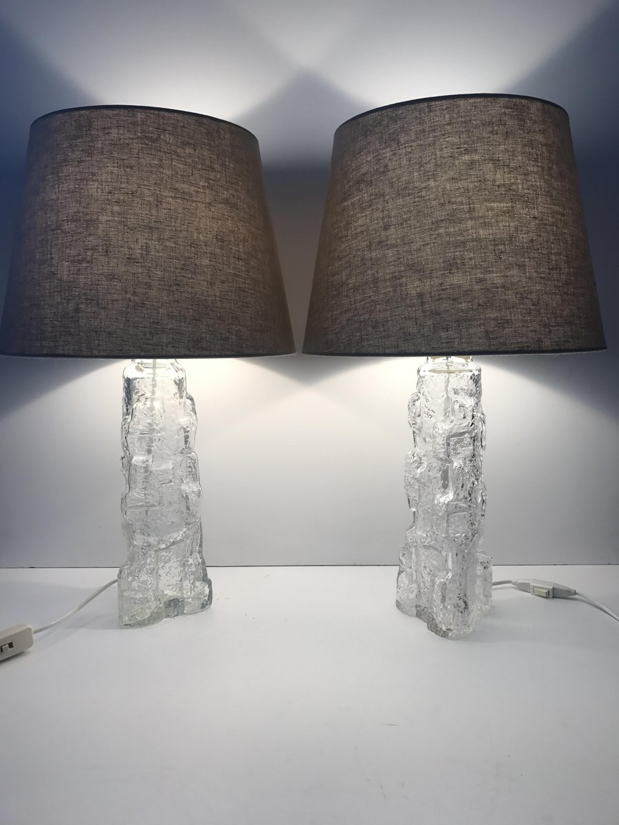 Swedish Art Glass Reijmyre Glasbruk Table Lamps, 1970s, Set of 2