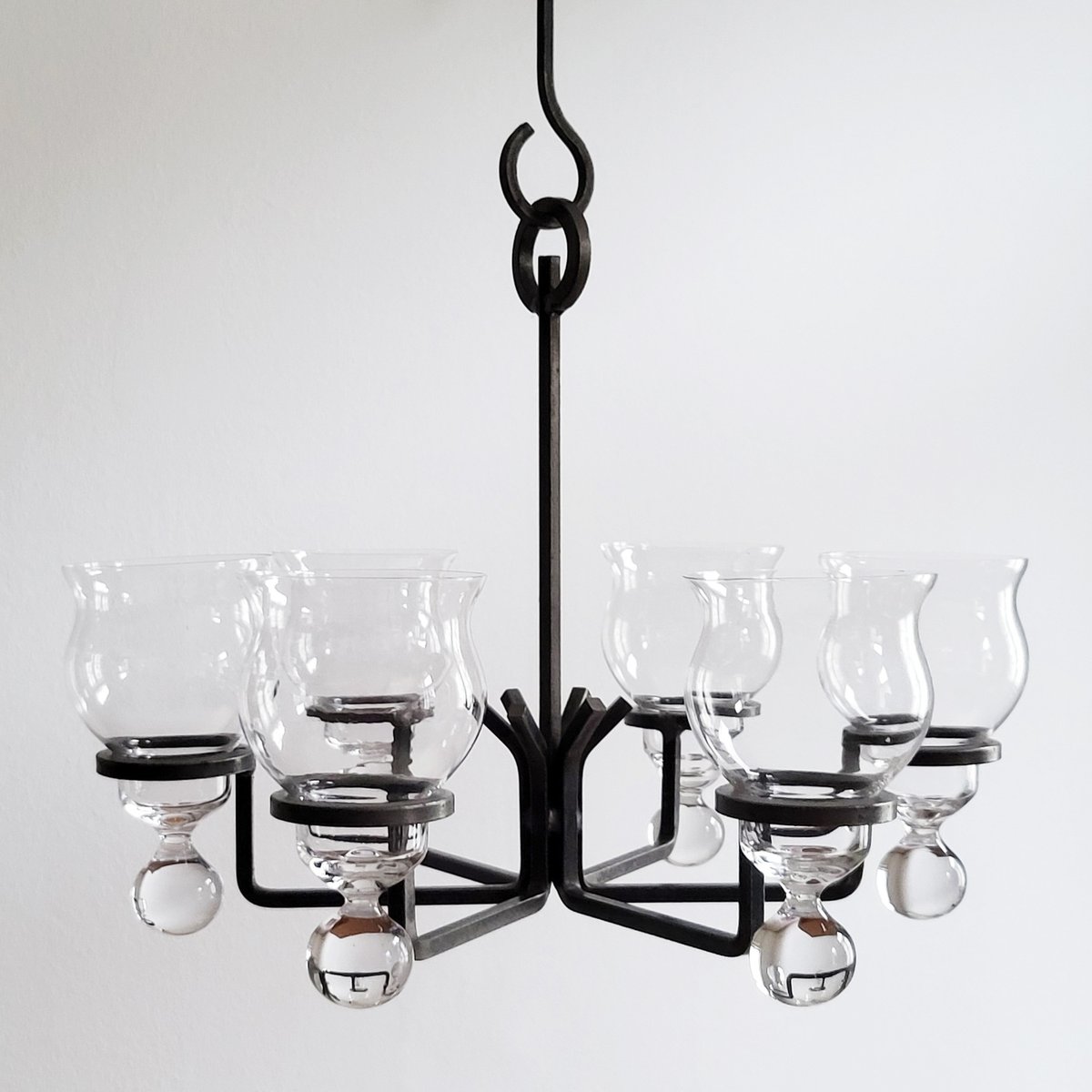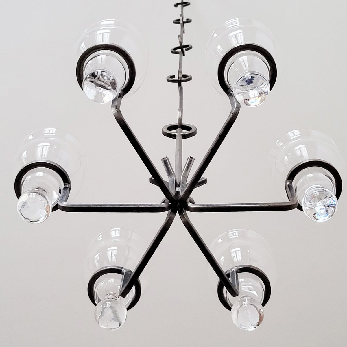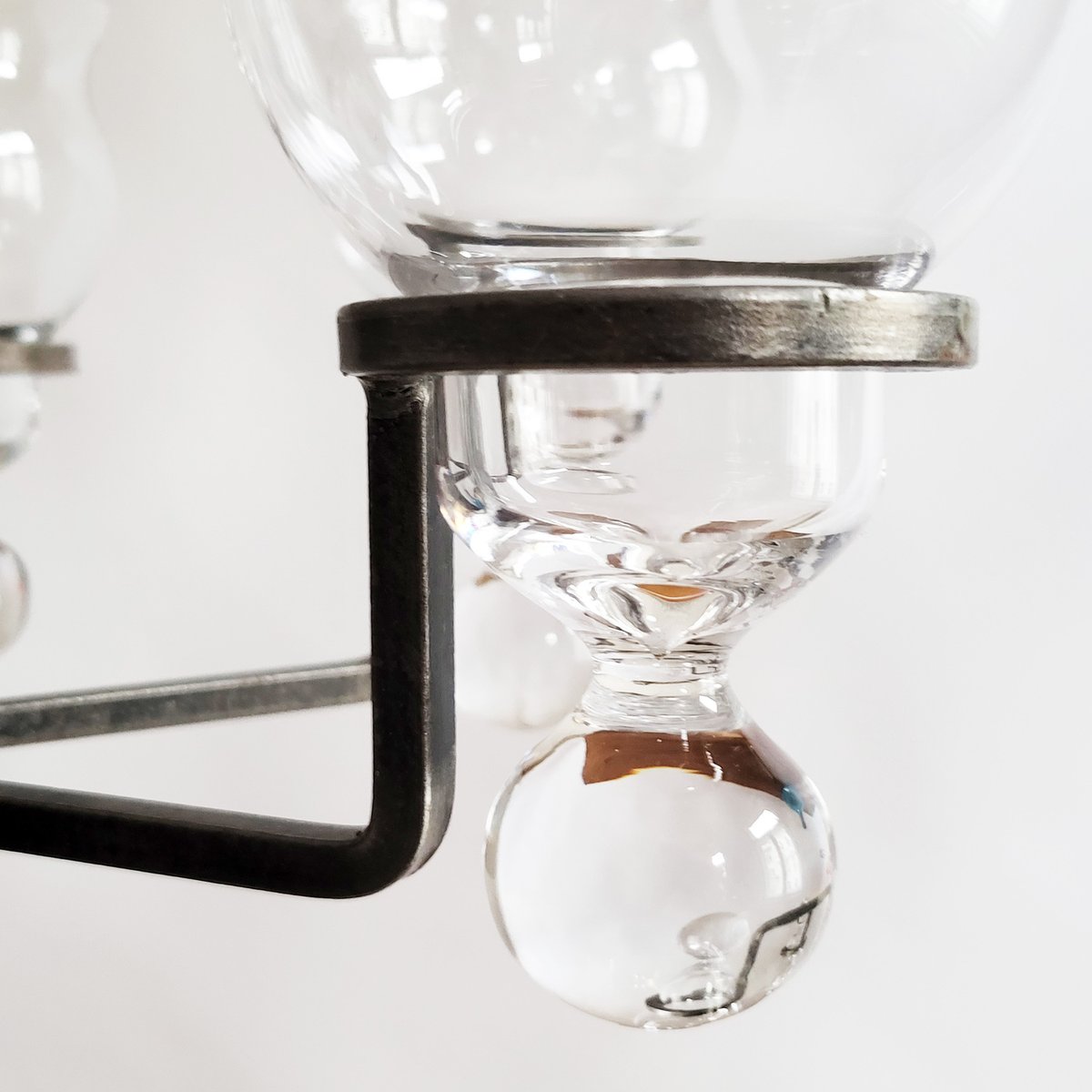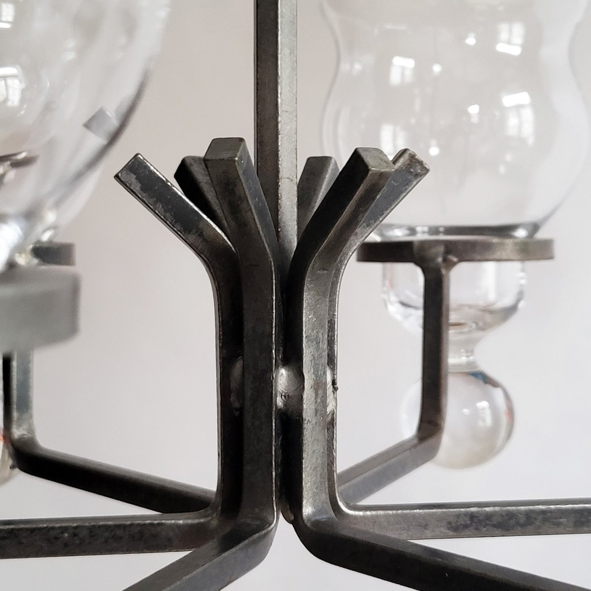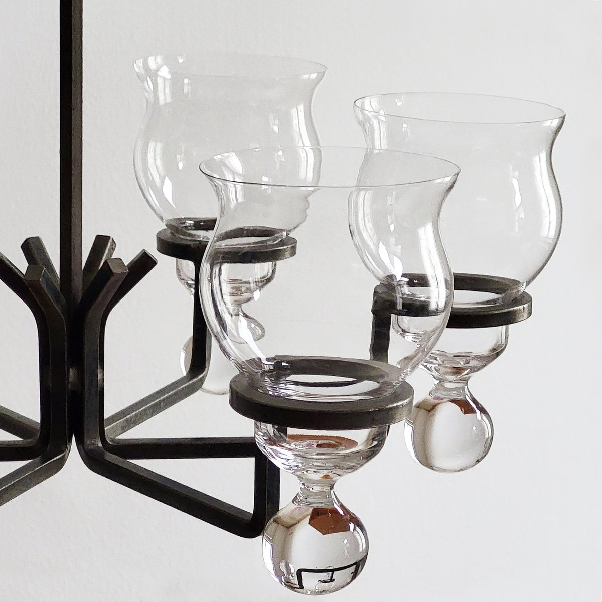 Swedish Glass & Wrought Iron Pendant Lamp by Erik Höglund for Kosta Boda, 1960s