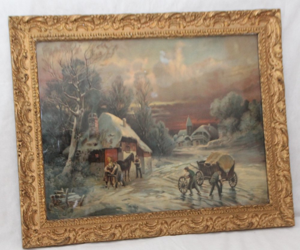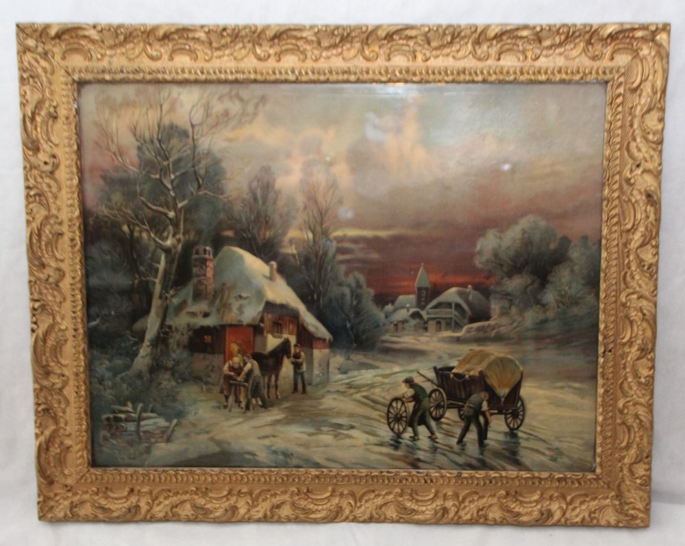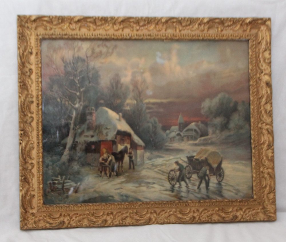 Swiss Landscape, Lithograph, Early 20th Century, Framed