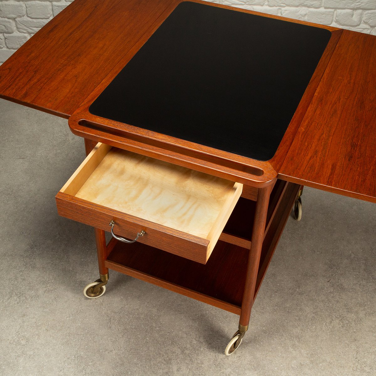 Teak and Formica Serving Trolley by Ludvig Pontoppidan, Denmark, 1950s