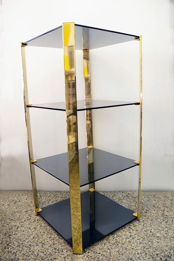 Tempered Crystal & Brass Shelving Unit from Gallotti & Radice, 1970s