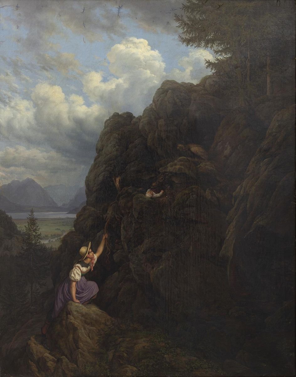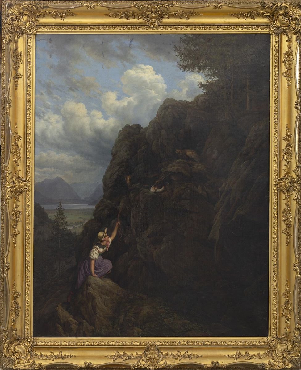 The Climbing - Oil on Canvas School of Dusseldorf -19th Century 19th Century