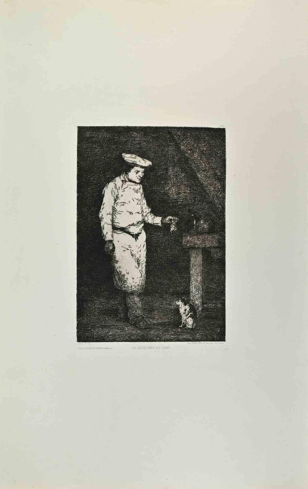 Theodule Ribot, Le Déjeuner du Chat, Etching, 1870s