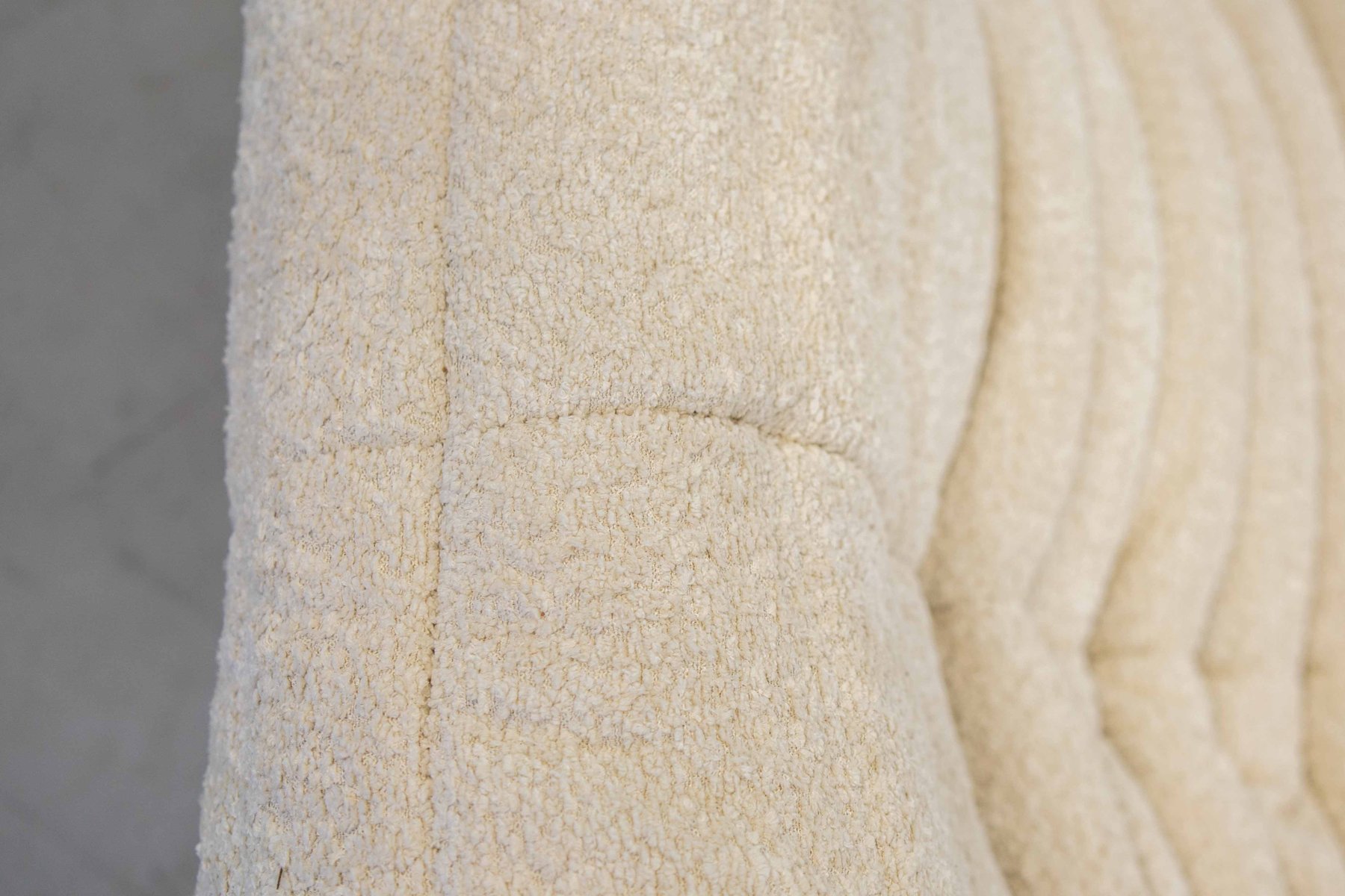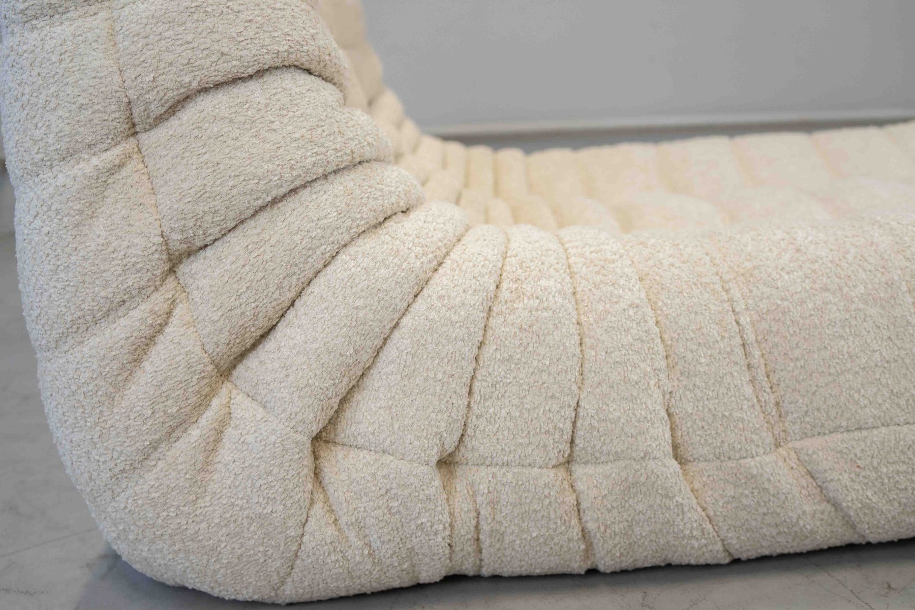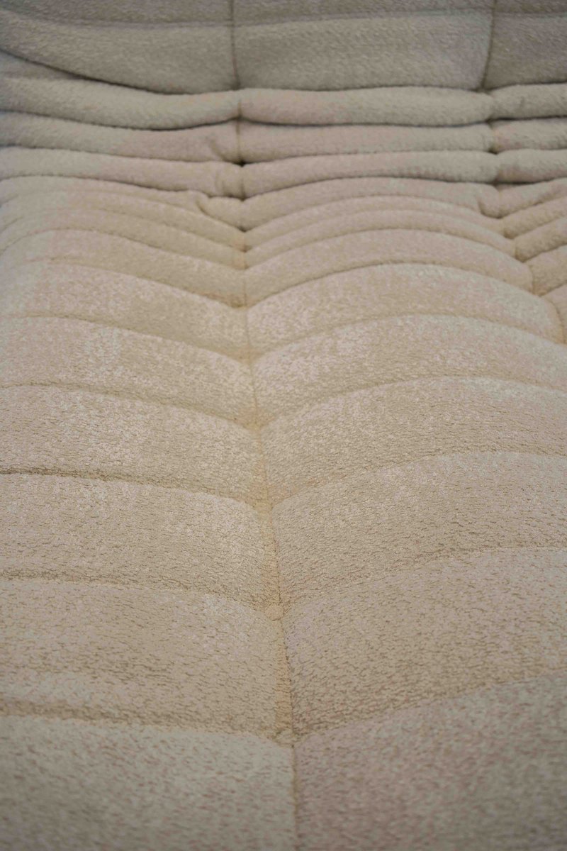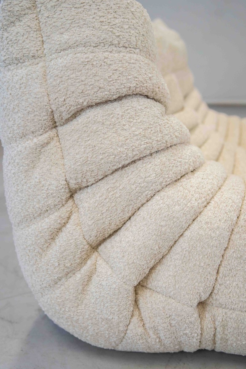 Grey Bouclette Togo Corner Chair, 2- and 3-Seat Sofa by Michel Ducaroy for Ligne Roset, Set of 3