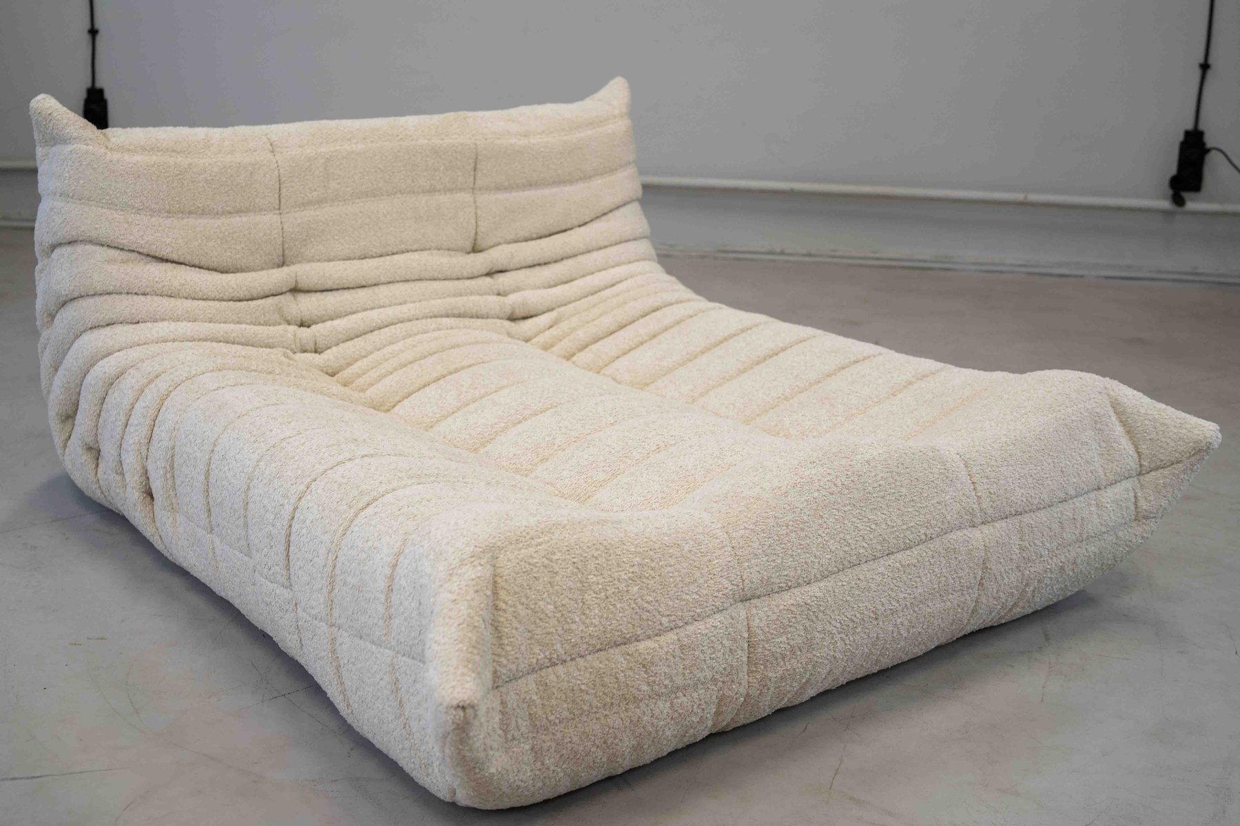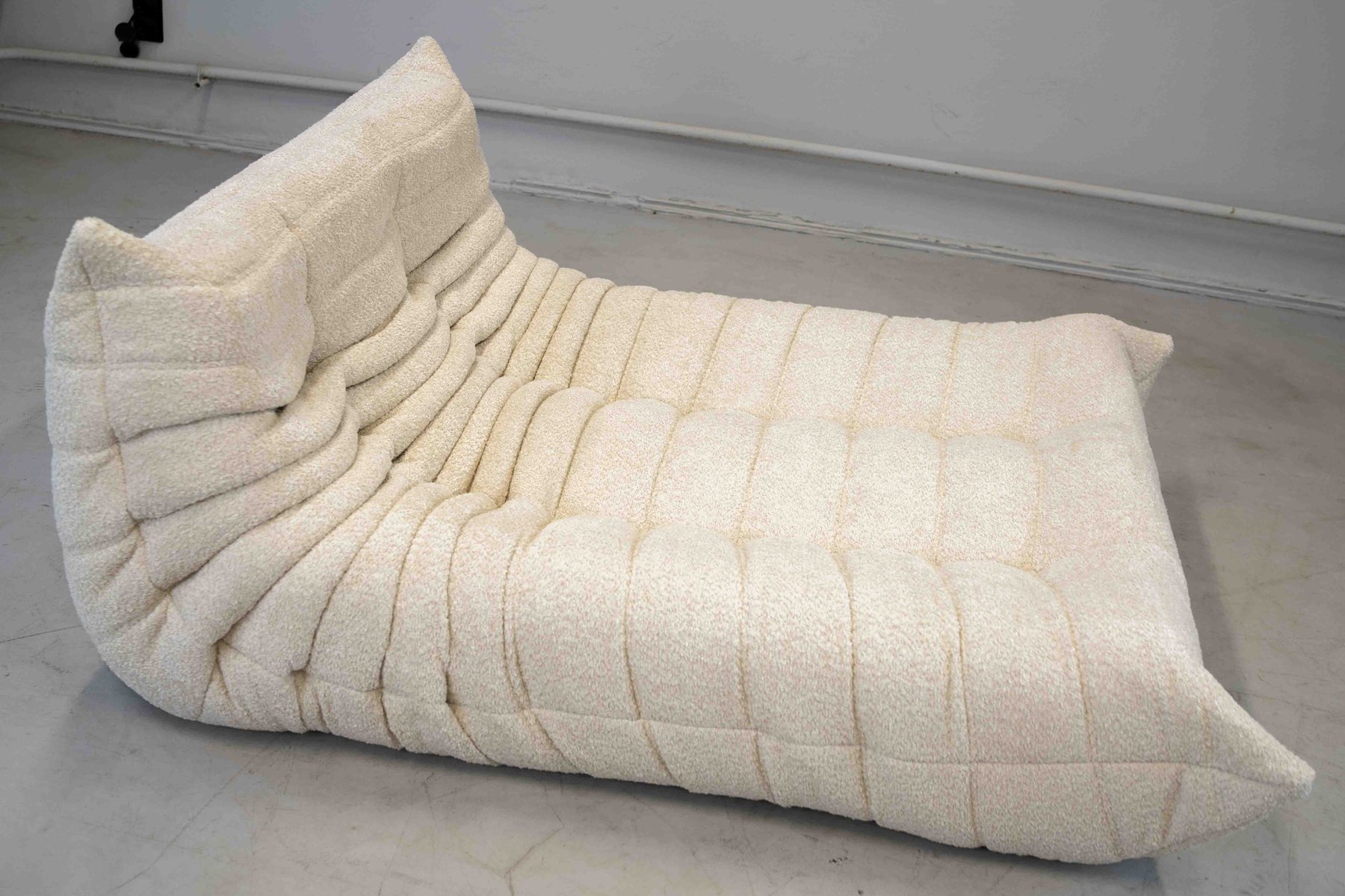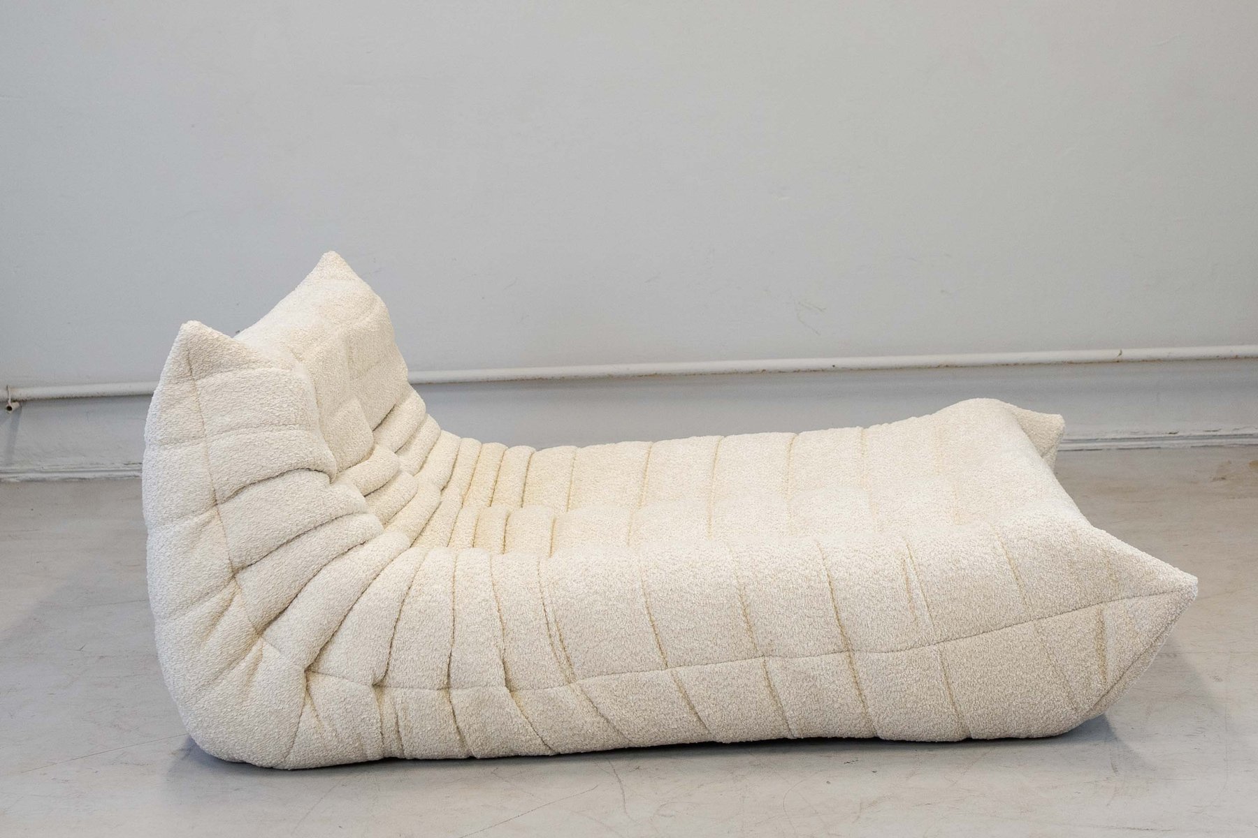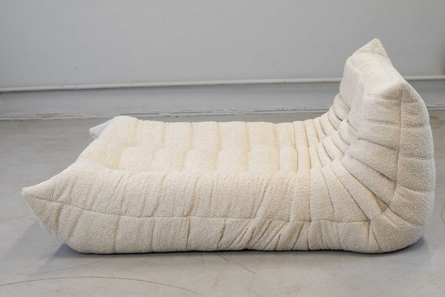 Grey Bouclette Togo Corner Chair, 2- and 3-Seat Sofa by Michel Ducaroy for Ligne Roset, Set of 3