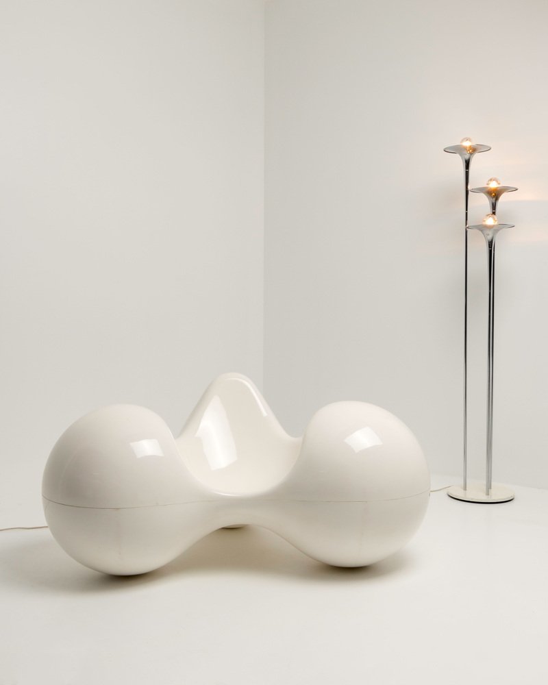 Asko’s most famous collaboration was with Finnish designer Eero Aarnio, who pushed the boundaries of furniture design with his molded fiberglass (and later polypropylene) chairs, such as the Ball Chair (1963), V.S.O.P. Chair (1966), Pastil Pod Chair (1968), and Tomato Chair (1972).