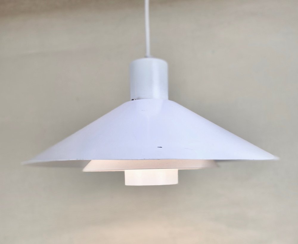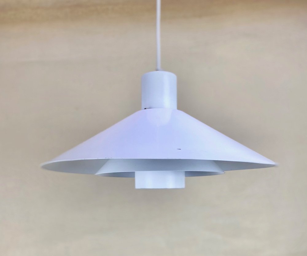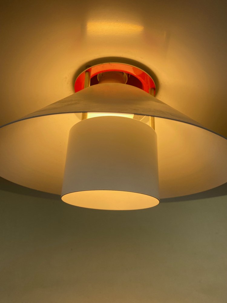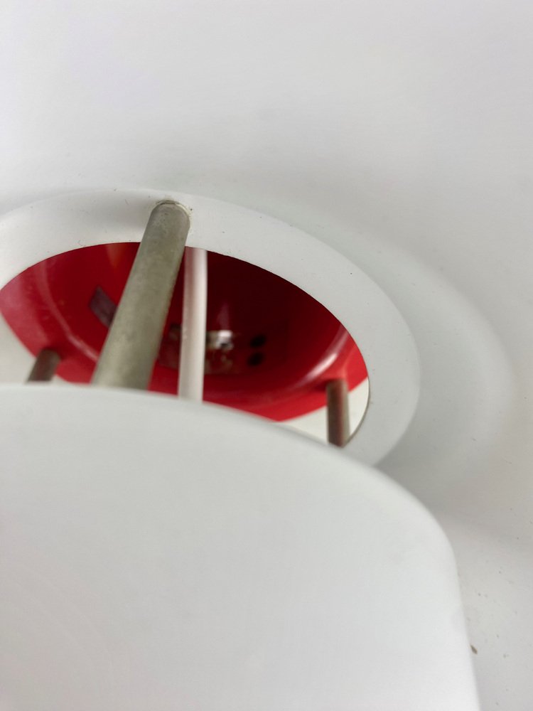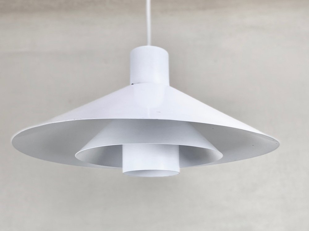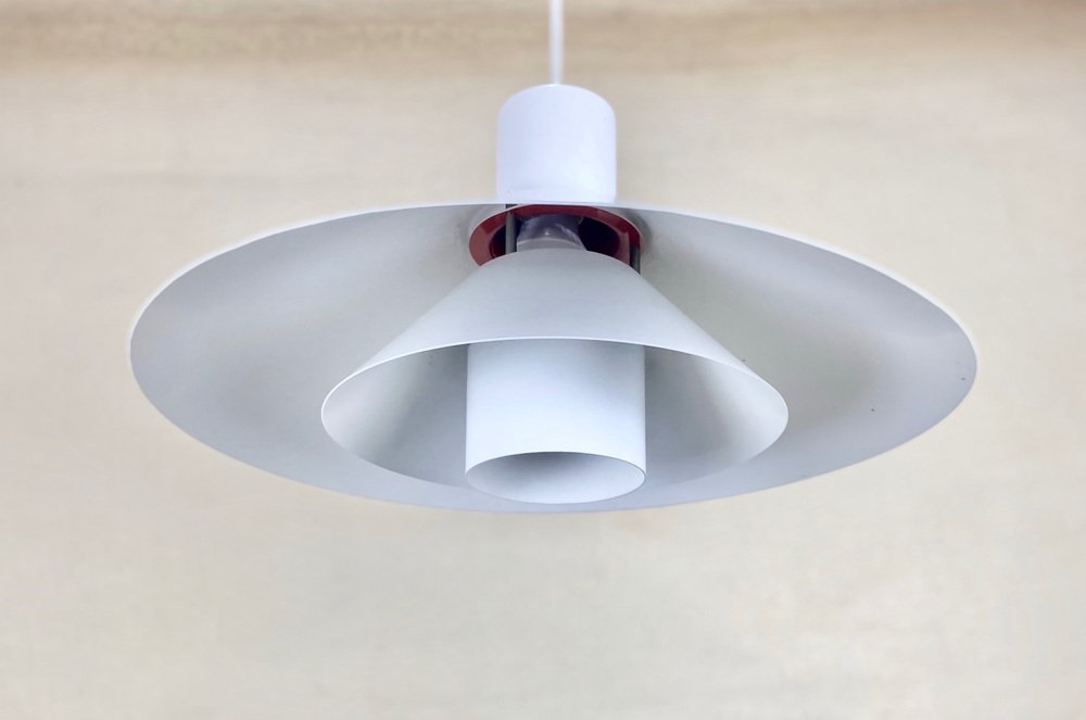 Nordisk Solar used its expertise in using plastic for the production of radio sets, to create many colorful plastic lighting fixtures in the late-1950s and 1960s. The company also commissioned notable Danish architects and designers including Sigvard Bernadotte, Acton Bjørn, Max Brüel, Vagn Dyring, Anton Fogh Holm, Jørgen Kastholm & Preben Fabricius, Eva and Nils Koppel, Sven Middelboe, and Jørn Utzon—who later designed the Sydney Opera House—to create lighting fixtures for Solar. The manufacturer’s most iconic productions include Sven Middleboe’s Verona Pendant Lamp (1960s); Jørn Utzon’s Tivoli Pendant (1947-48, renamed P254 and reintroduced in the 1960s) and Navy Pendant or Sovaernspendel (1956)—which was created for the Royal Danish Navy offices, and was later updated and re-launched by Louis Poulsen under the new name Doo Wop; K Kewo’s Minisol Light (1960s); Preben Fabricius & Jørgen Kastholm’s P376 (1964, renamed Kastholm Pendant in 1980); and Vagn Dyring’s Granada Light (1982).