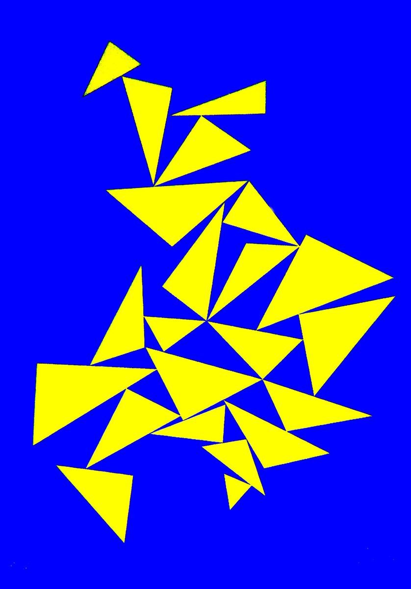 Triangles on Blue - Original Screen Print by Lia Drei - 1970 ca. 1970 ca.