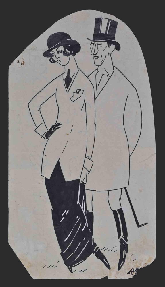 Unknown, Couple, Ink Drawing, Mid 20th Century