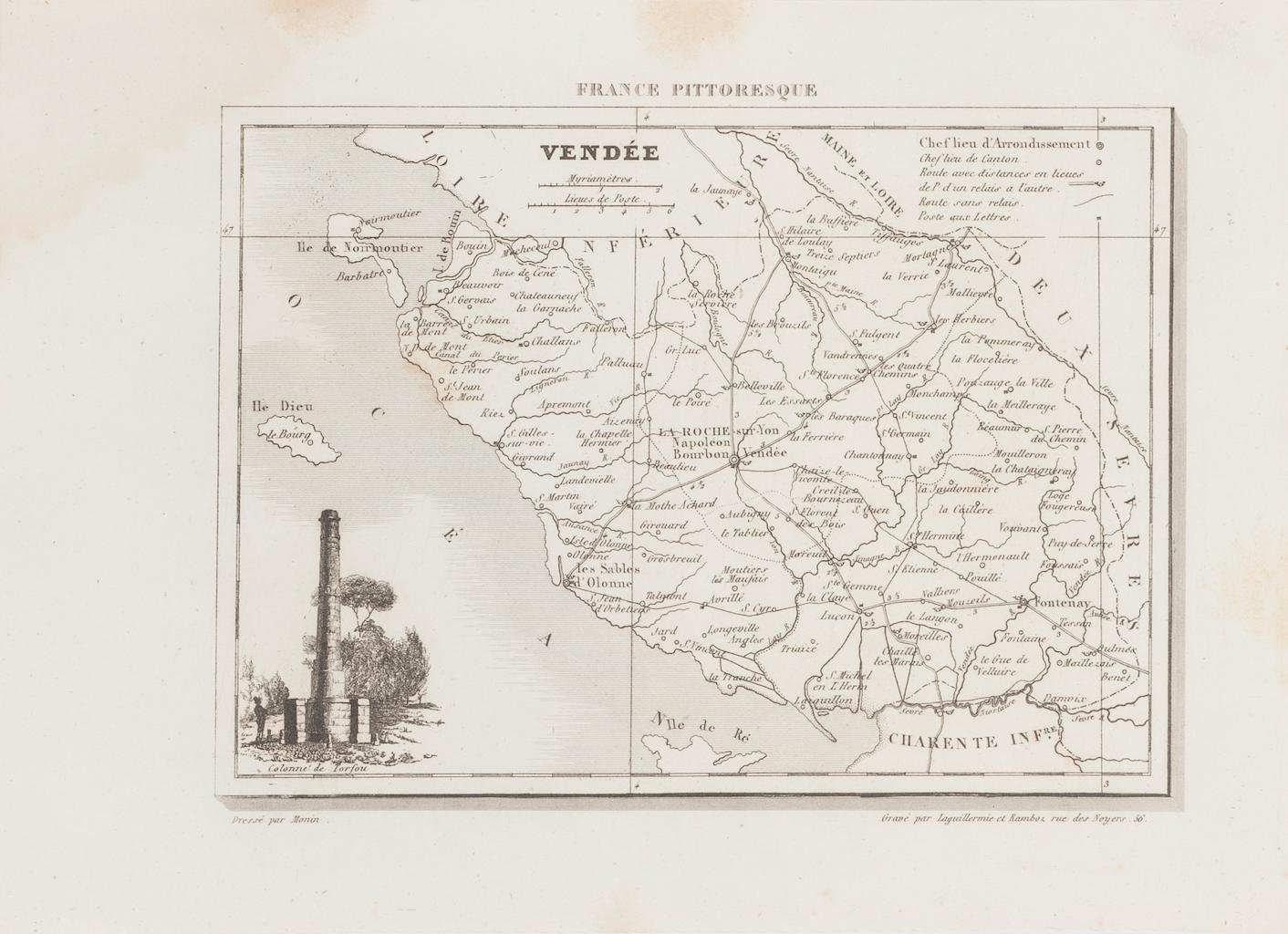Unknown - Map of Vendée - Original Etching - 19th Century