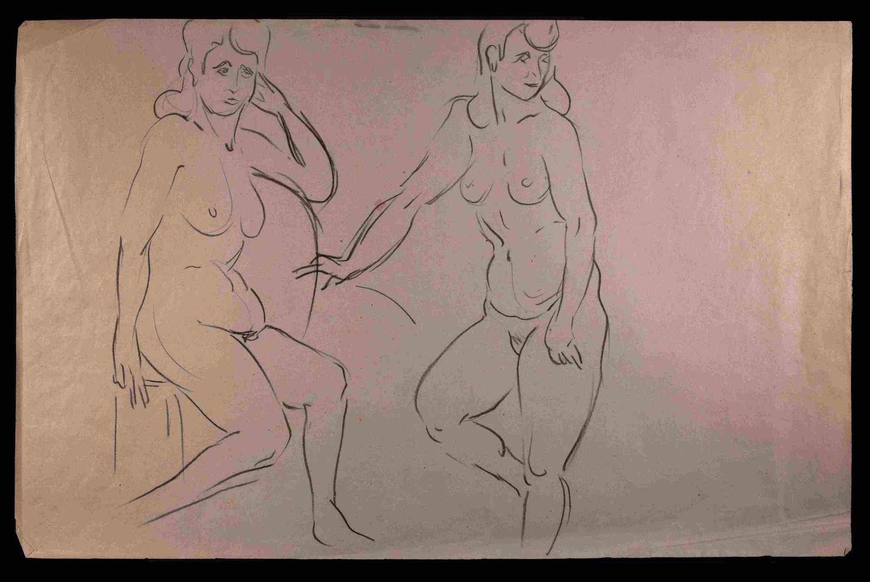 Unknown, Nudes, Original Pencil Drawing on Paper, Mid-20th Century