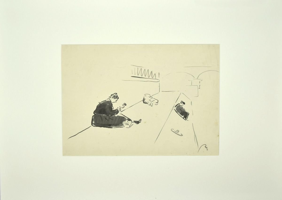 Unknown, Paris Along the Seine, China Ink Drawing, 1910s