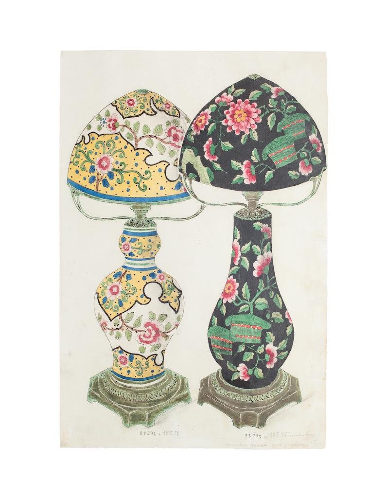 Unknown, Porcelain Lamps, Ink and Watercolor, 1880s