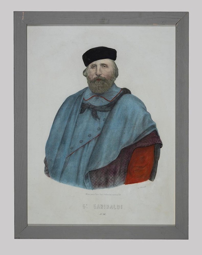 Unknown, Portrait of Giuseppe Garibaldi, Lithograph, 19th Century, Framed