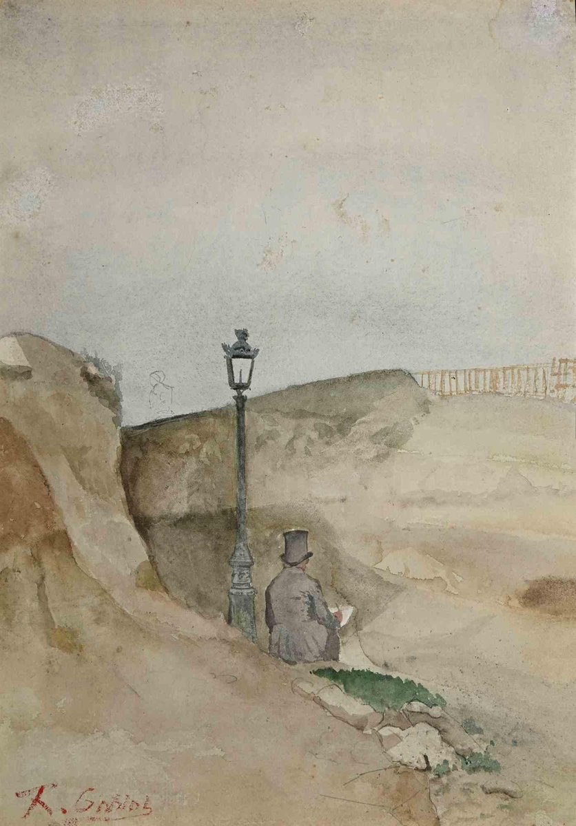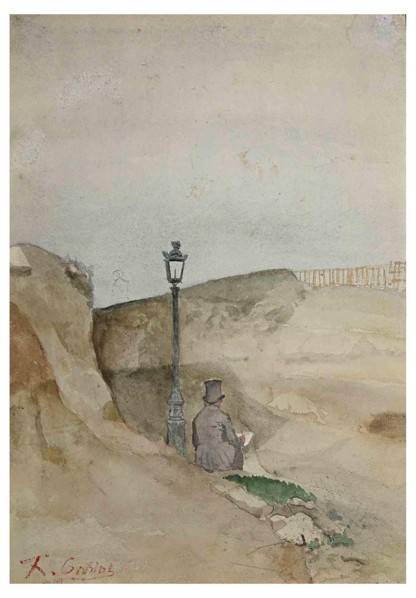 Unknown, The Writer on the Rocks, Original Watercolor, Early 20th Century