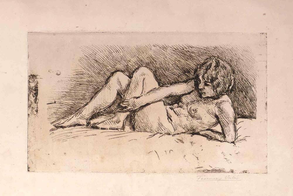 Valér Ferenczy, Reclined Nude, Etching, 1930s