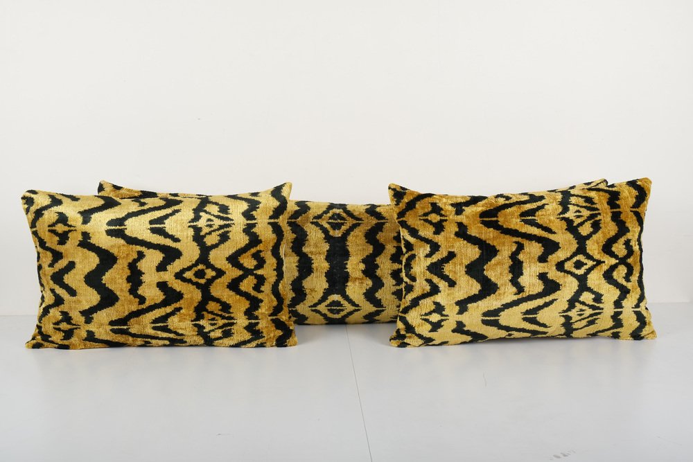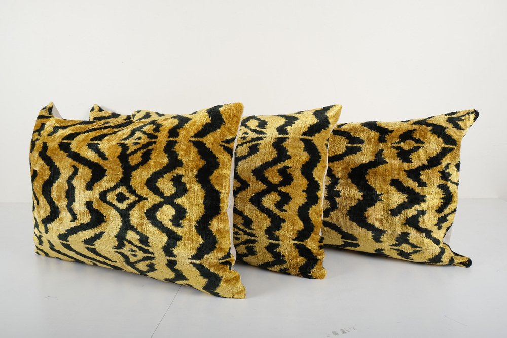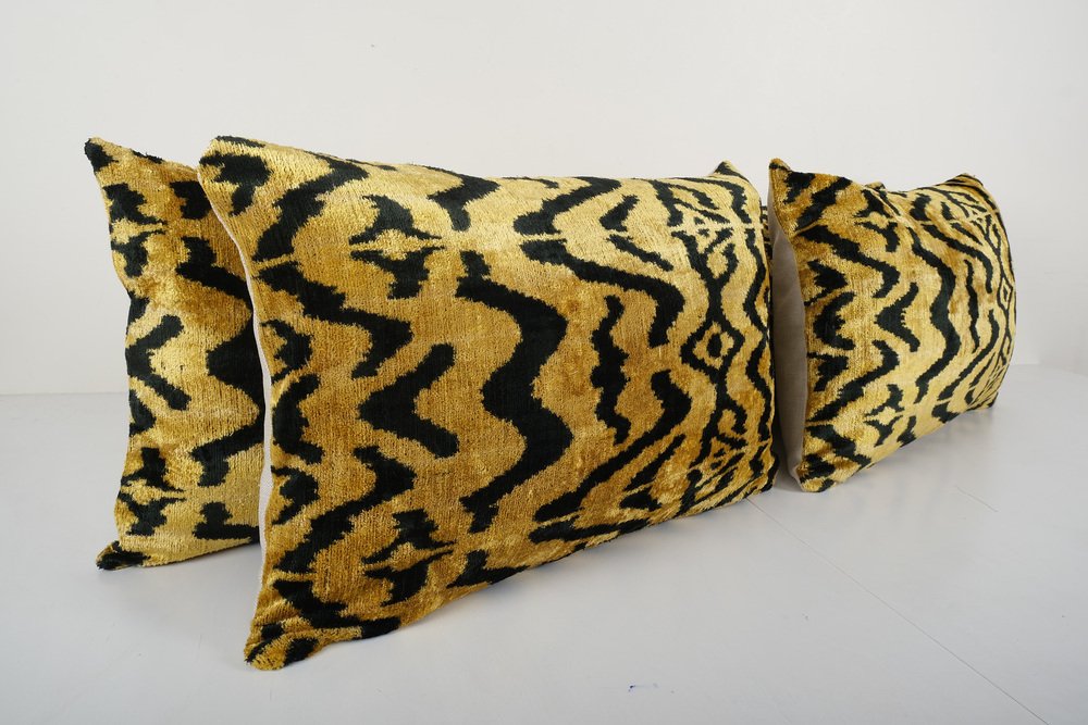 Velvet and Silk Ikat Tiger Cushion Covers, 2010s, Set of 3