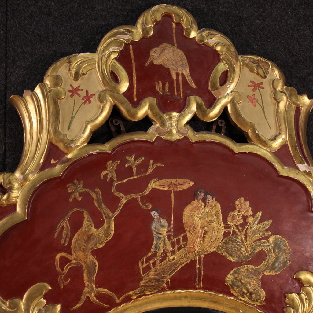 Venetian Chinoiserie Lacquered, Painted, and Gilded Mirror, 1950s