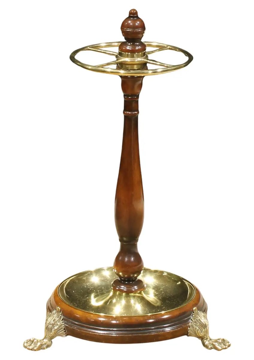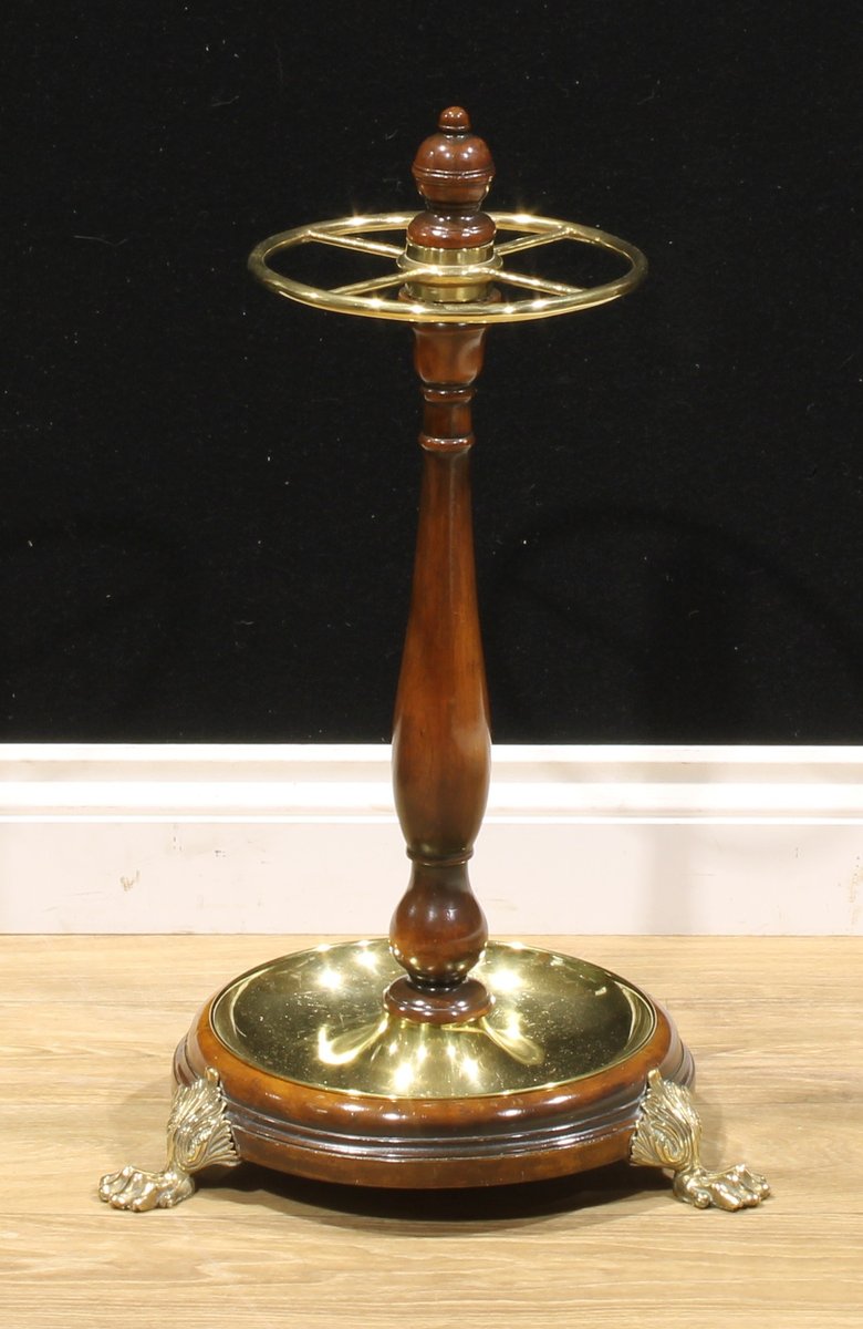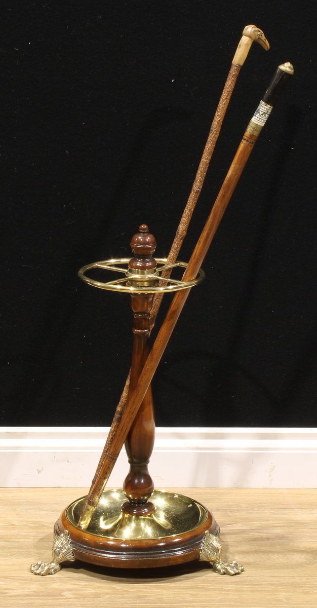 Victorian Mahogany & Brass Stick & Umbrella Hall Stand with Lion Paw Feet, 1850s